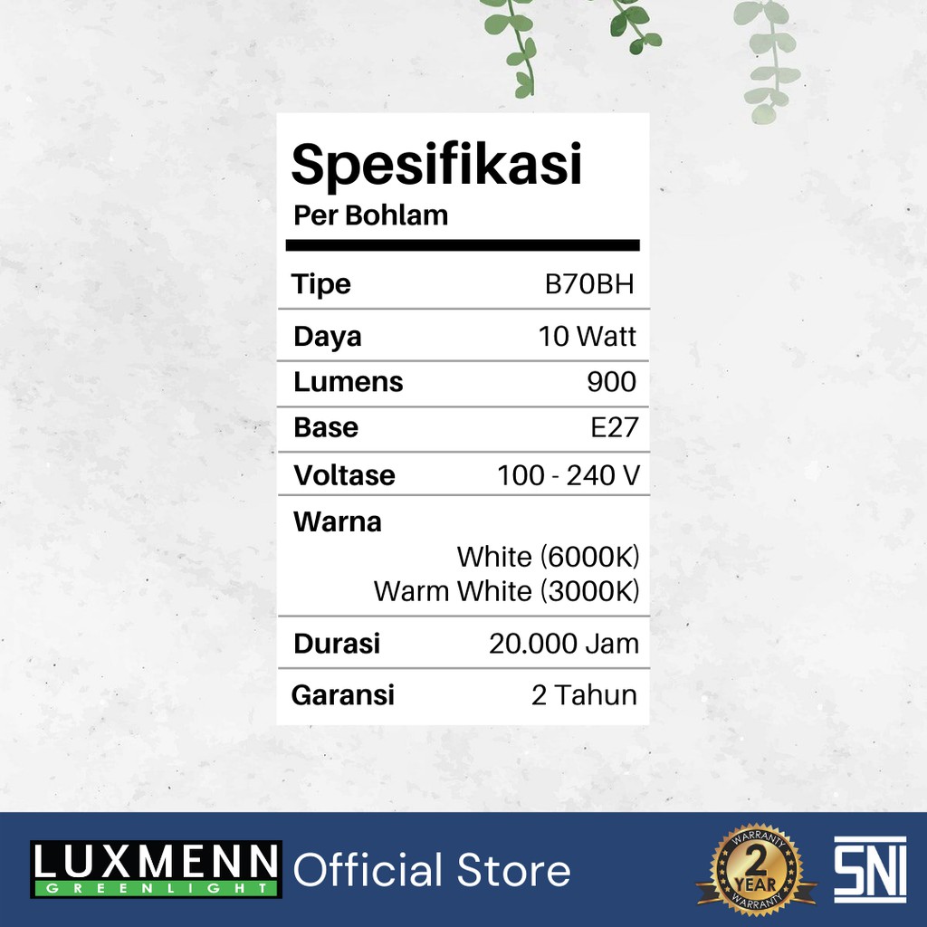 Luxmenn LED Lampu Bohlam, Seri B70BH, 10 W Kuning (3000K) Putih (6000K ) & Tricolor