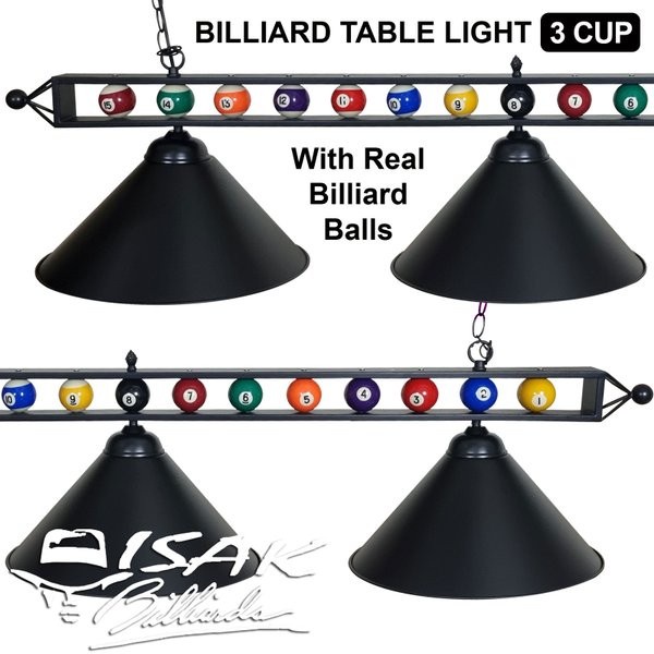Luxury Billiard Table Light - Real Pool Balls 3 Cup Lampu Meja