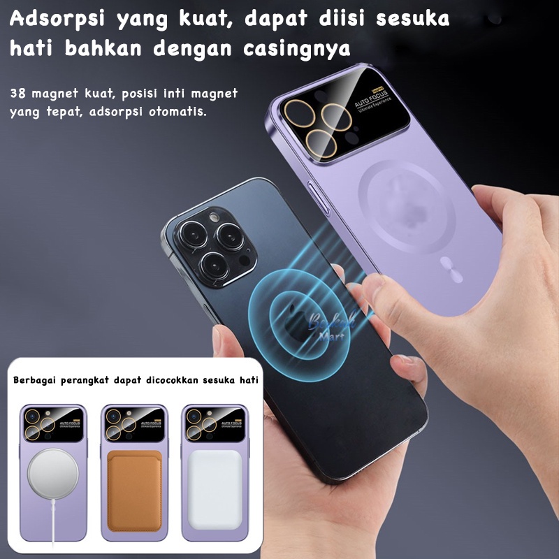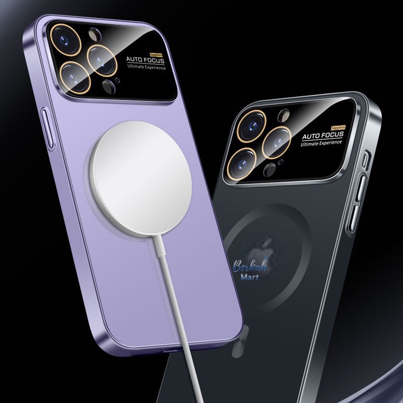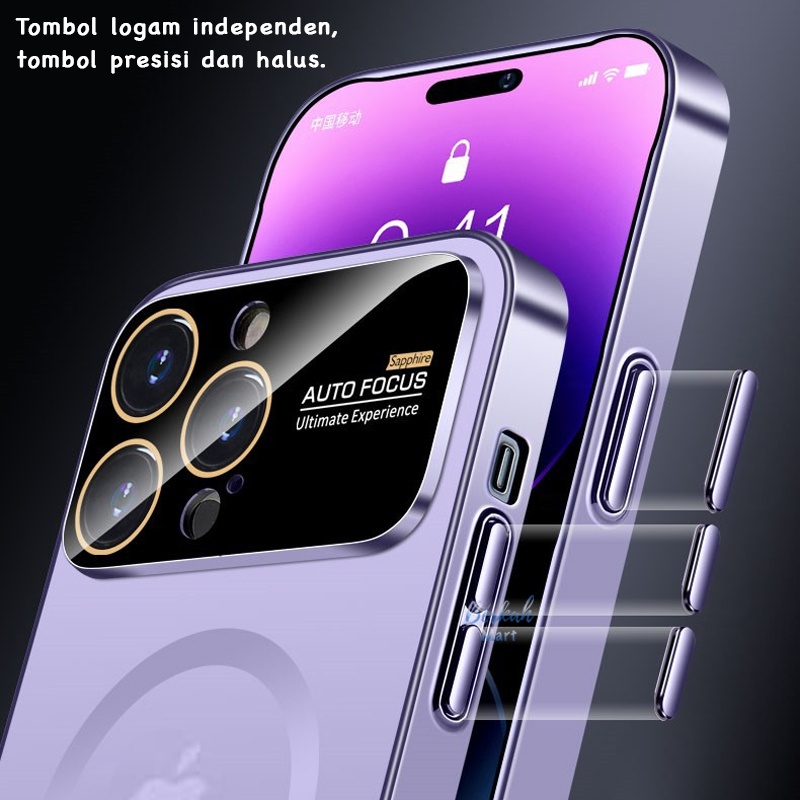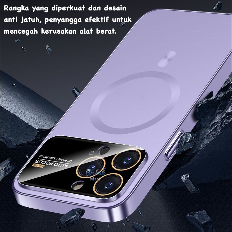 Luxury Magnetic Matte Glass Case for iPhone 12 13 14 Pro 12 13 14 Pro Max dengan Kaca Besar Lens Protection Jaring Antii Debu Mewah Magsafe Softcase Auto Focus Casing Cover Silikon