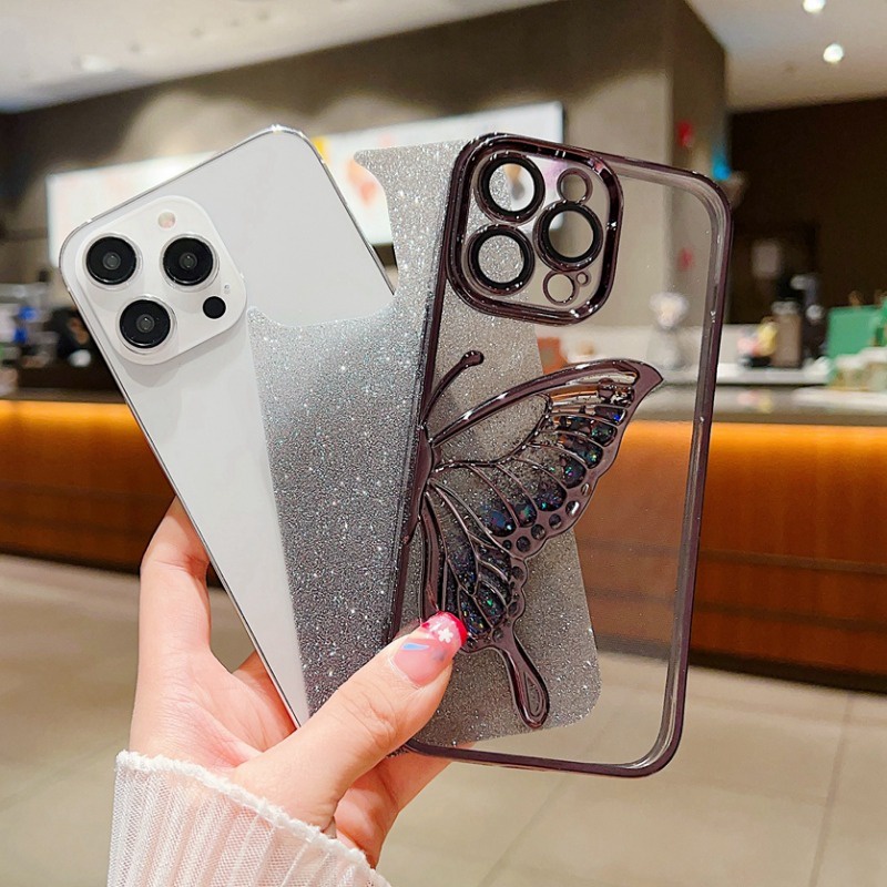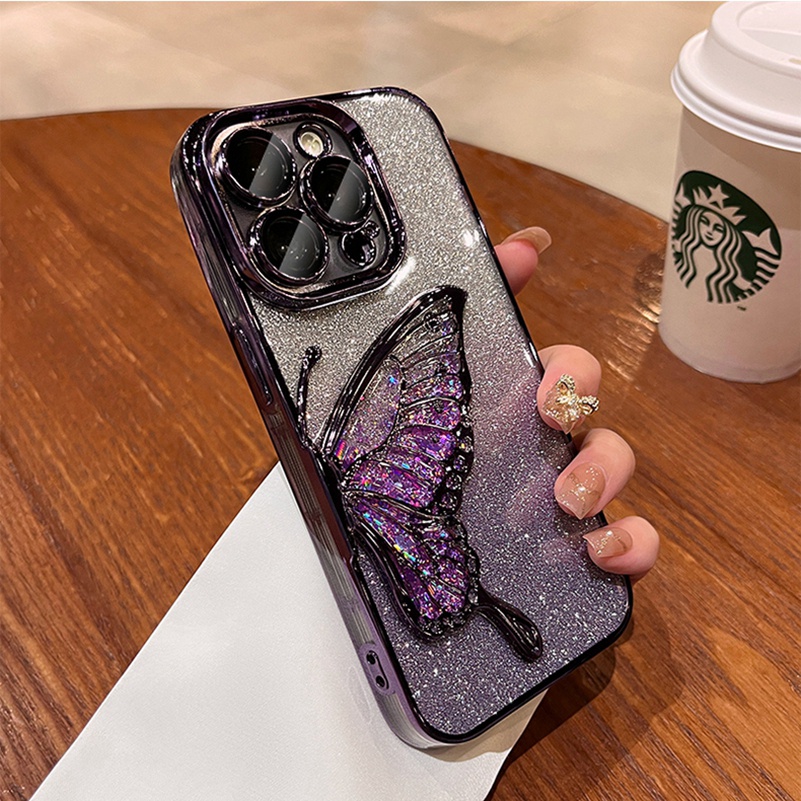Luxury Quicksand Glitter Butterfly Case for iPhone 11 12 13 14 15 16 Pro Max 16 15 plus Shinny Bling Clear Plating Soft case back Cover