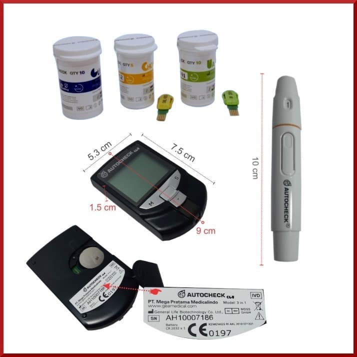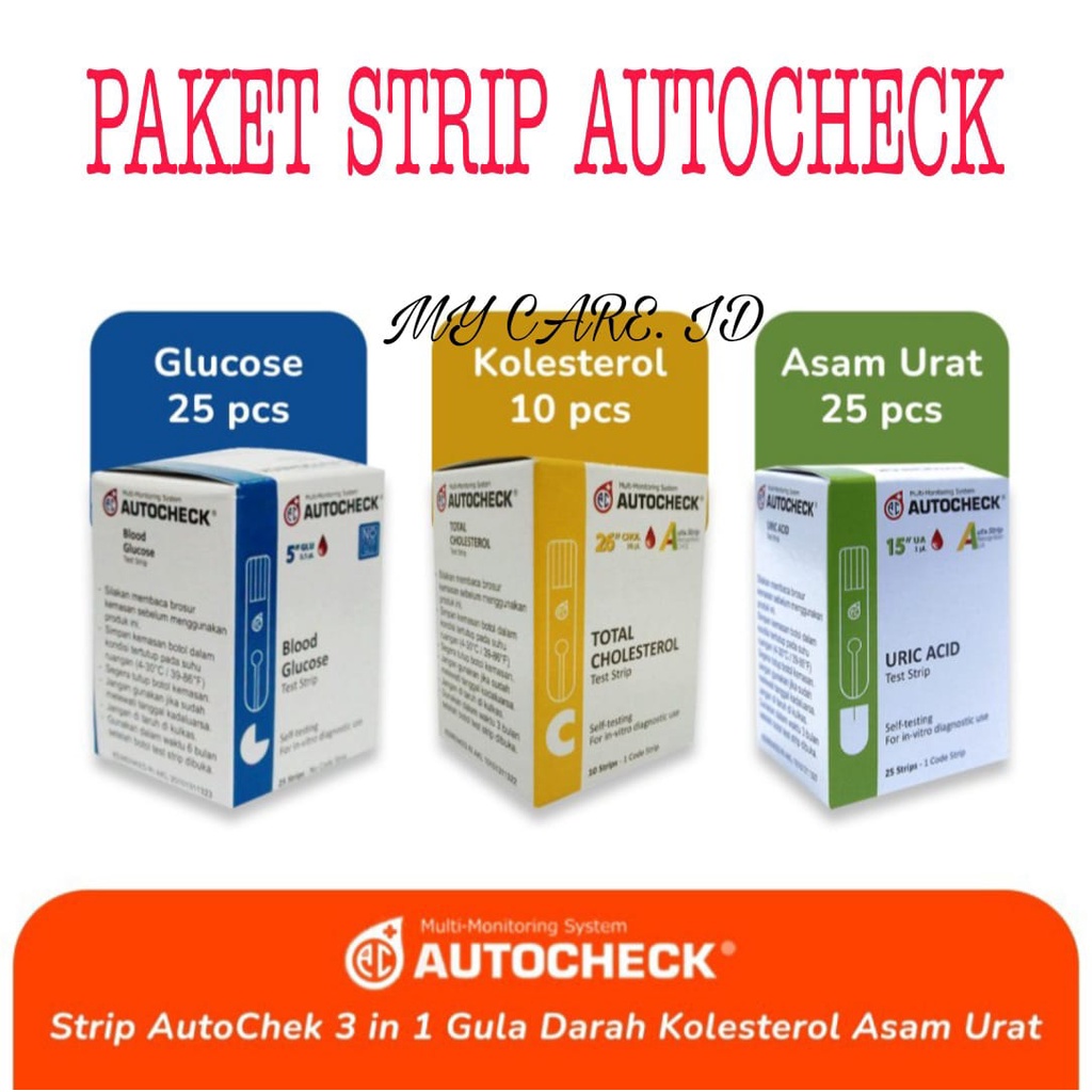 LynCare Alat Autocheck 3in1 GCU / Alat Autochek Tes Gula Asam Urat Cholesterol / Paket Strip Autochek / Stik Autocheck