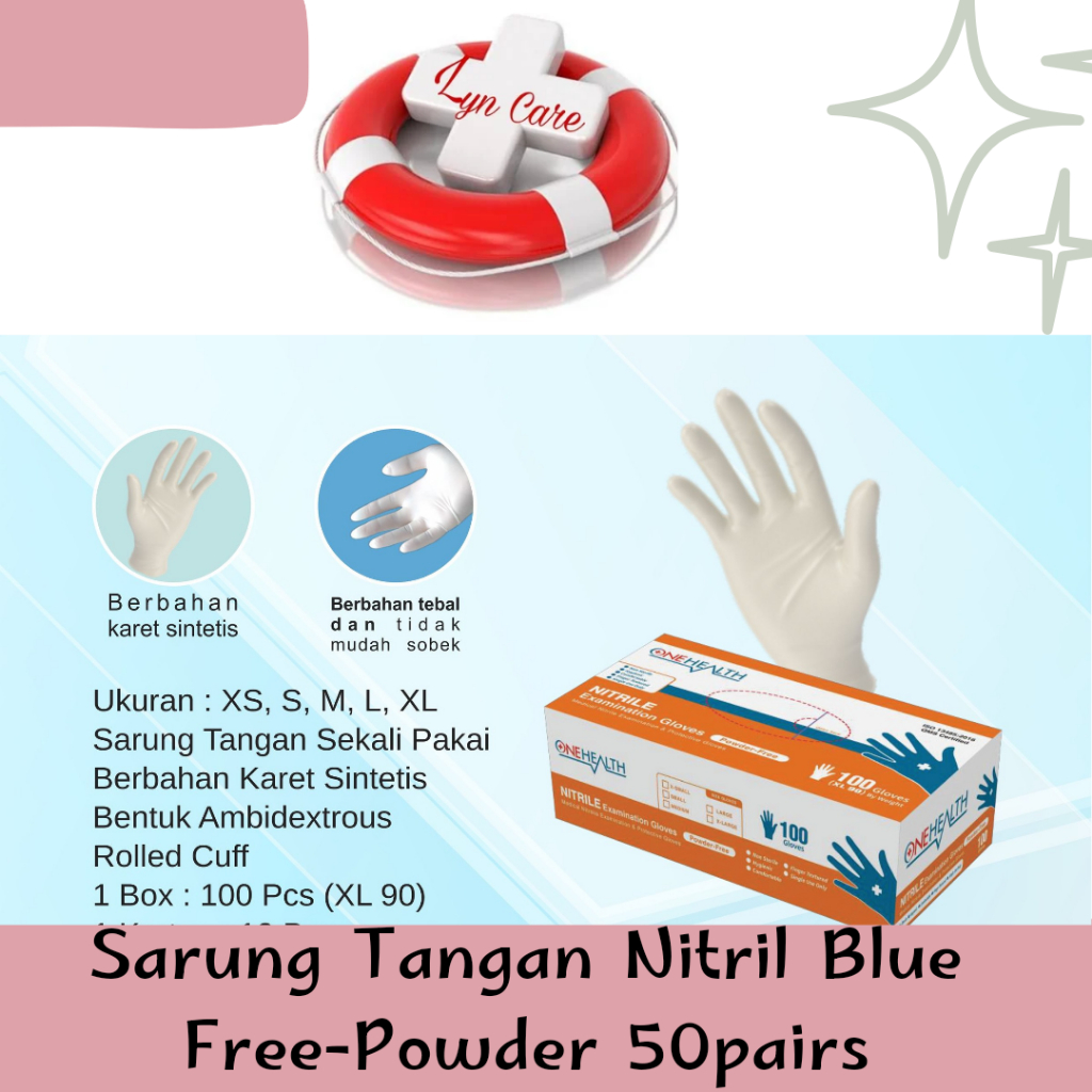 LynCare Sarung Tangan Nitril - Handscoon Nitrile Warna Biru - Sarung Tangan Medis