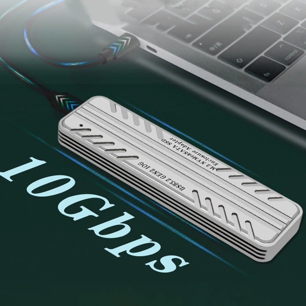 M.2 NVMe SATA SSD Enclosure USB3.1 GEN2 USB-C To C and USB-A To C Cables SATA Box 10Gbps External M2 Adapter Case for M2 NVME