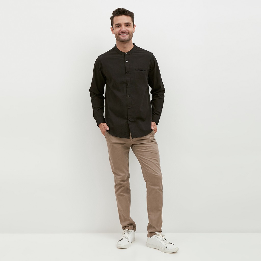 M231 Kemeja Pria Koko Shanghai Polos Oxford Panjang Hitam 1552I
