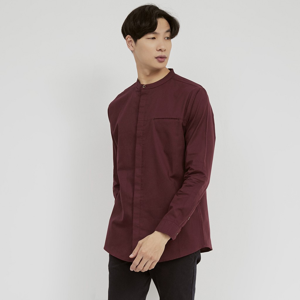 M231 Kemeja Pria Koko Shanghai Polos Soft Twill Panjang Maroon 1971C
