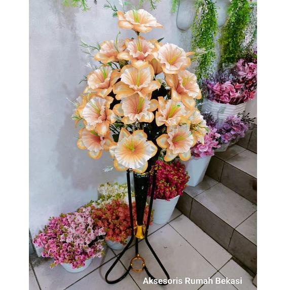 M97B Bunga Gloria / bunga kembang sepatu / bunga Koja artificial dengan pot besi