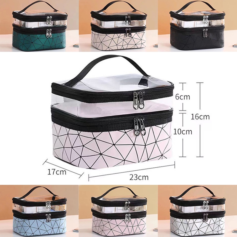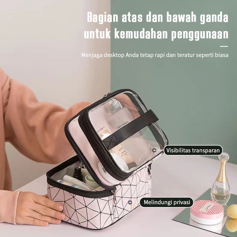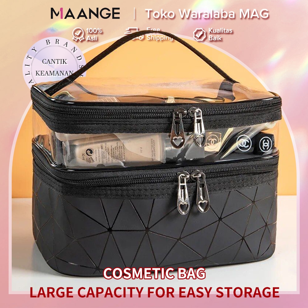 MAANGE Tempat Alat Baru Transparan Travel Tas Koper Make Up Organizer Pouch Bag Dua Lapisan Tas Kosmetik Washbag Kotak Cosmetic Koper Wanita Lucu Transparan Serbaguna Anti Air Penyimpanan Aksesoris 0308