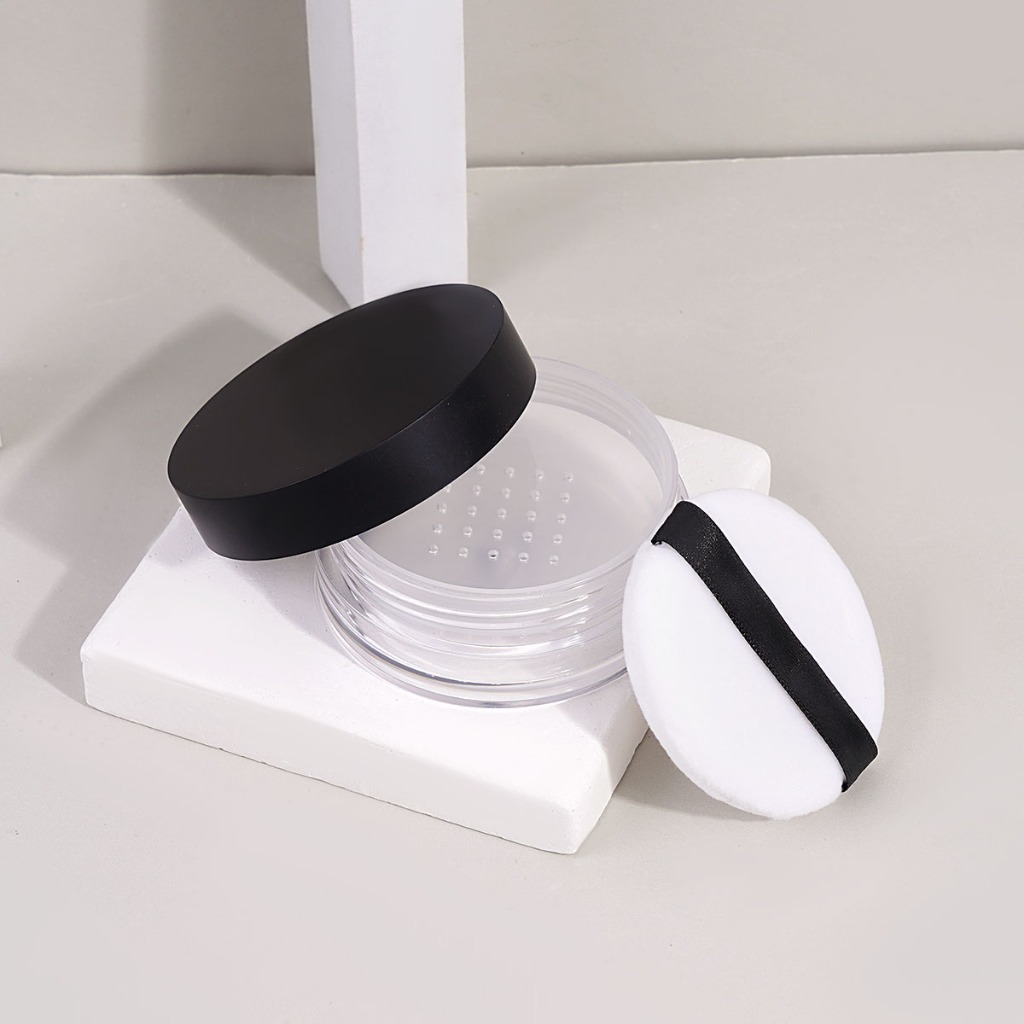 MAANGE Wadah Bedak Cermin Tabur Portabel Bedak Wadah Powder Tabur Kosong Dengan Puff