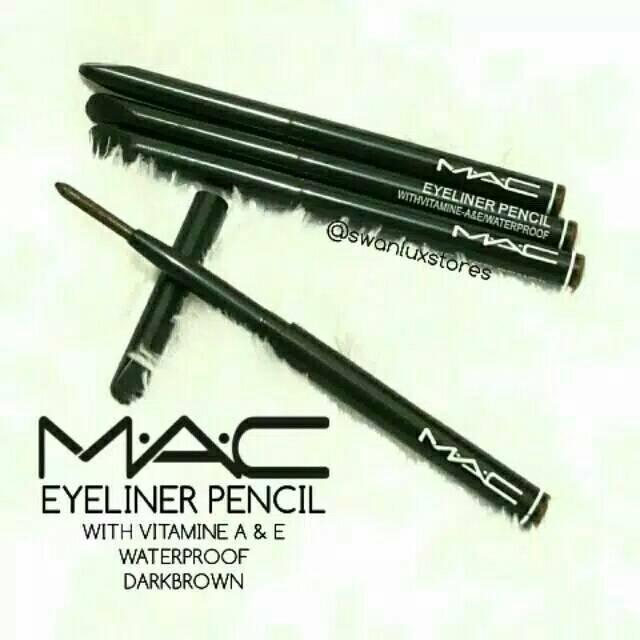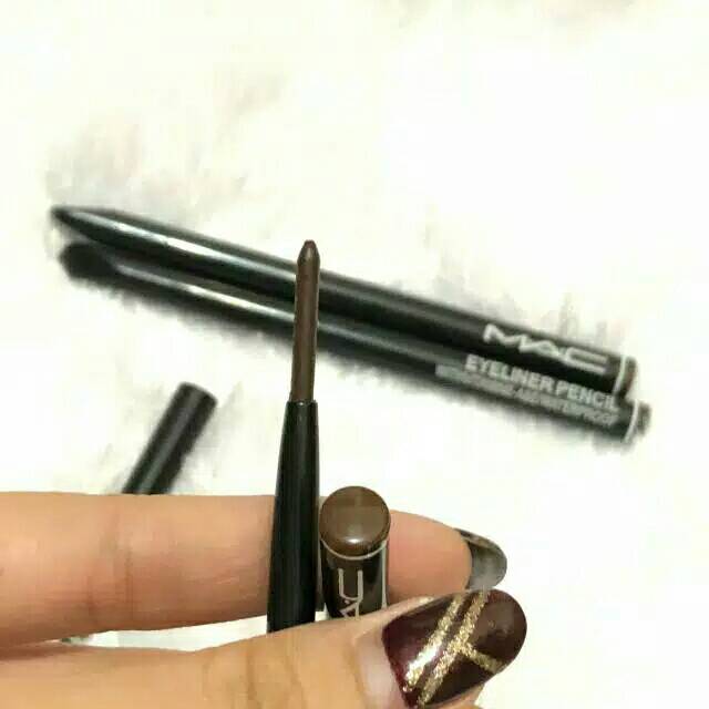 MAC BLACK/DARKBROWN EYELINER PENCIL PUTAR with Vitamine A & E Waterproof eye liner hitam coklat new