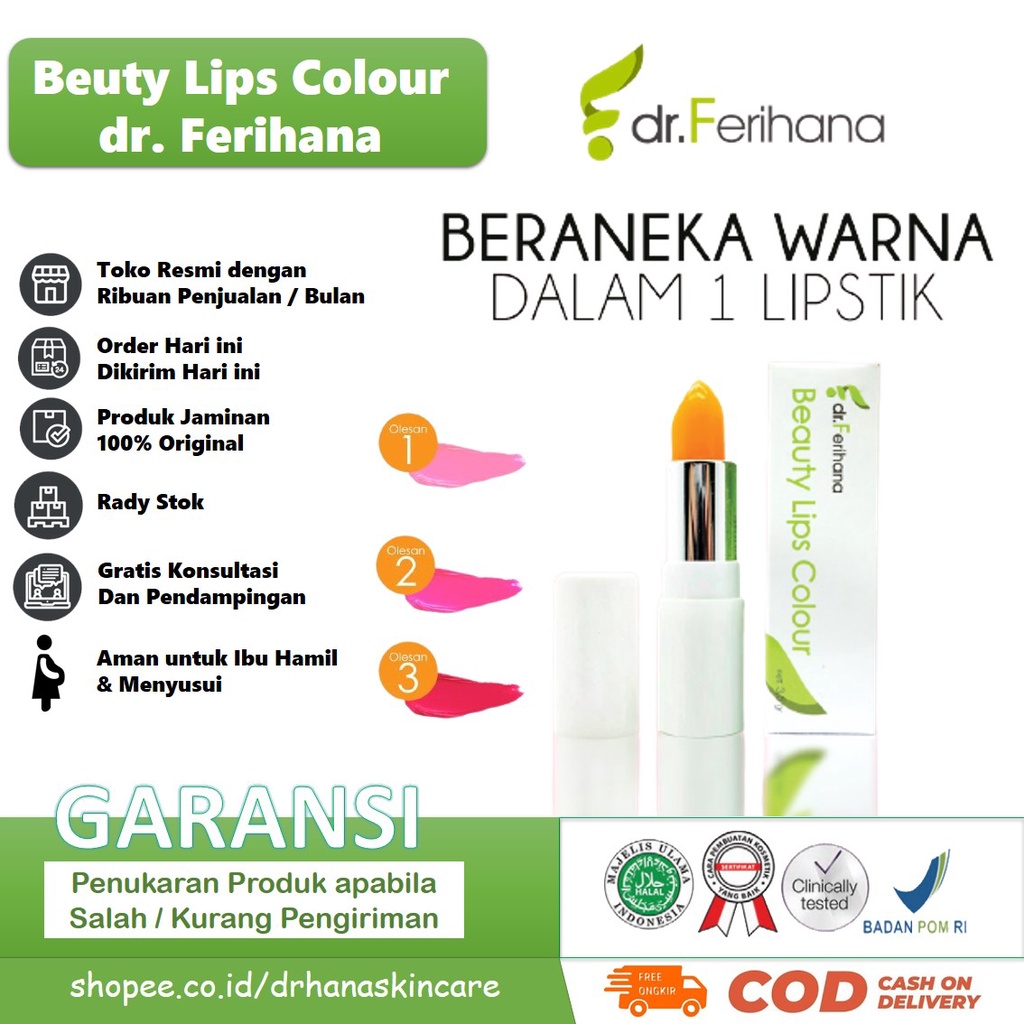 Magic Beauty Lips Colour DR. FERIHANA COSMETICS & SKINCARE Lipstik dengan Bahan Alam untuk Melembabkan Bibir Kering Hitam Pecah Pecah BPOM LPPOM HALAL MUI
