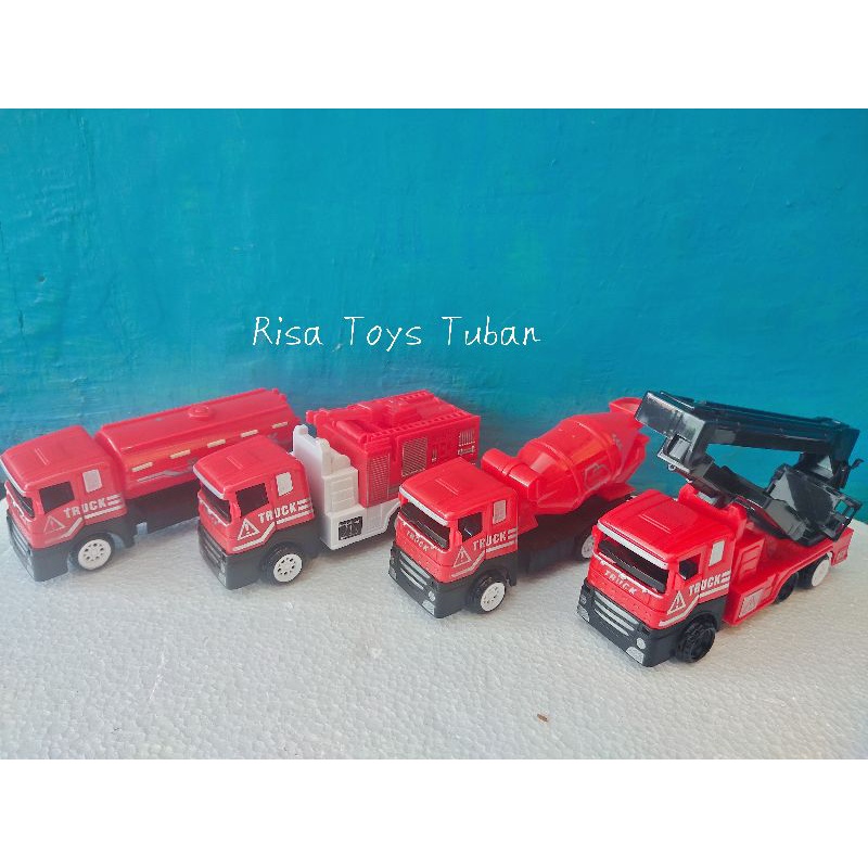 MAINAN ANAK MOBIL DAMKAR LENGKAP ISI 4 /CAMICAL TANDER/TANGGA/CRANE/MOLEN