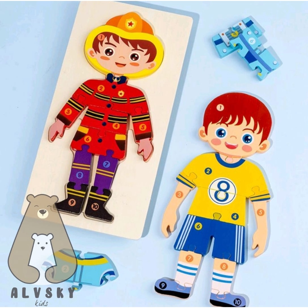 MAINAN EDUKASI ANAK PUZZLE KAYU 3D CHUNKY PROFESI / MAINAN MONTESSORI PUZZLE KAYU ANAK