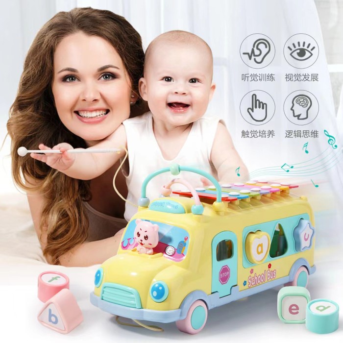 MAINAN EDUKASI MOTORIK ANAK HAPPY BUS BOX MUSIK XYLOPHONE PUZZLE