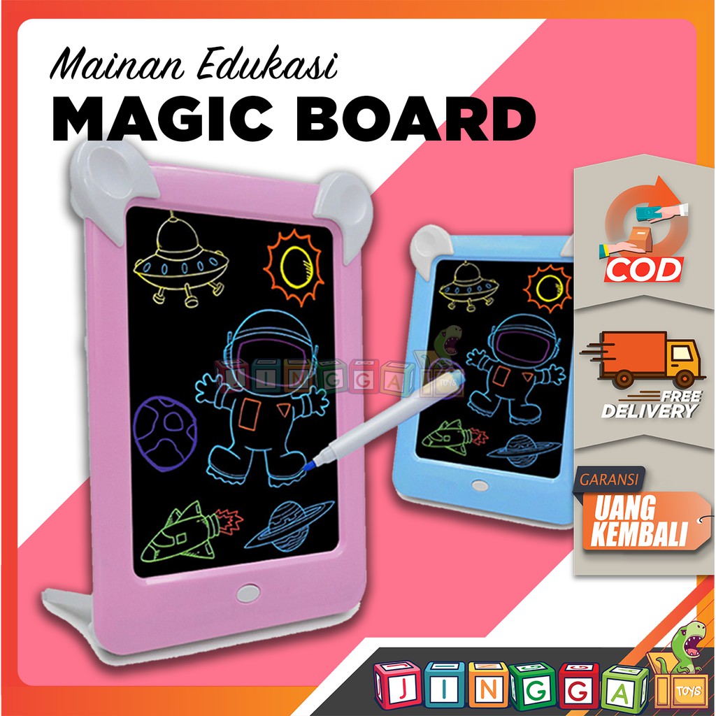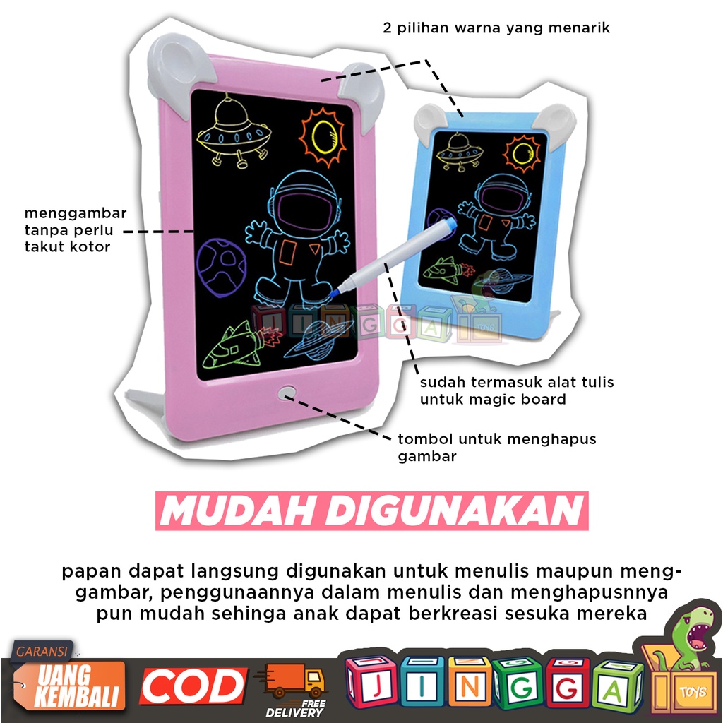 MAINAN EDUKASI PAPAN TULIS MAGNETIK ANAK. DRAWING BOARD ANAK. PAPAN GAMBAR MAGNET LED