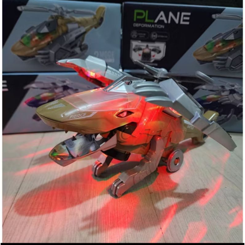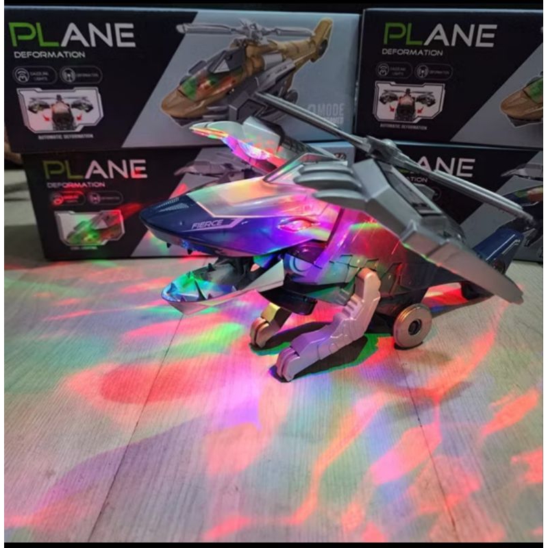 MAINAN HELIKOPTER TEMPUR ROBOT DINOSAURUS ROBOT DEFORMATION HELI DINOSAURUS OTOMATIS