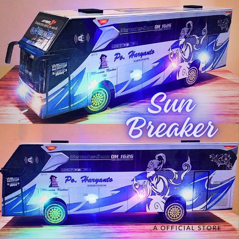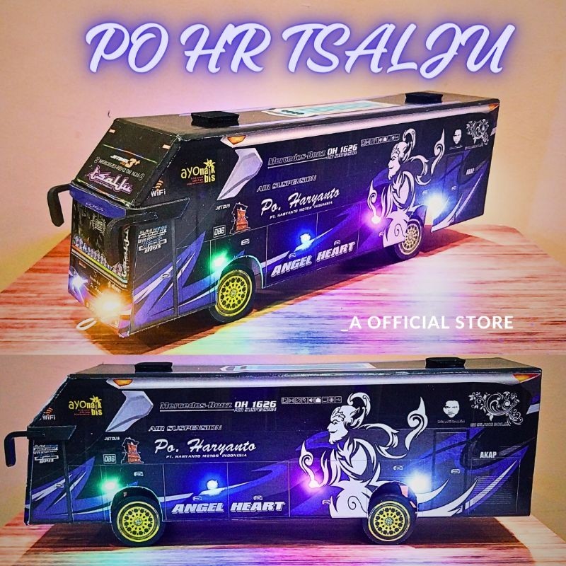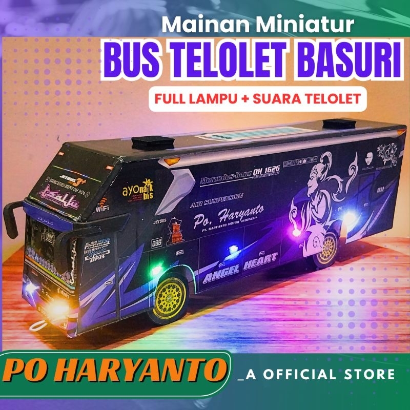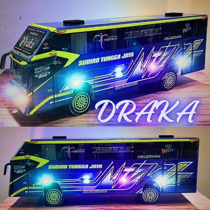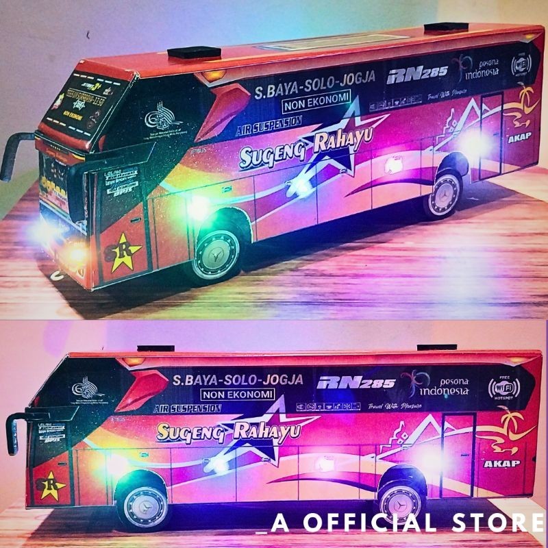 MAINAN MINIATUR BUS TELOLET BASURI BUS AKAP INDONESIA FULL LAMPU (BISA TAMBAH SUARA MUSIK TELOLET)
