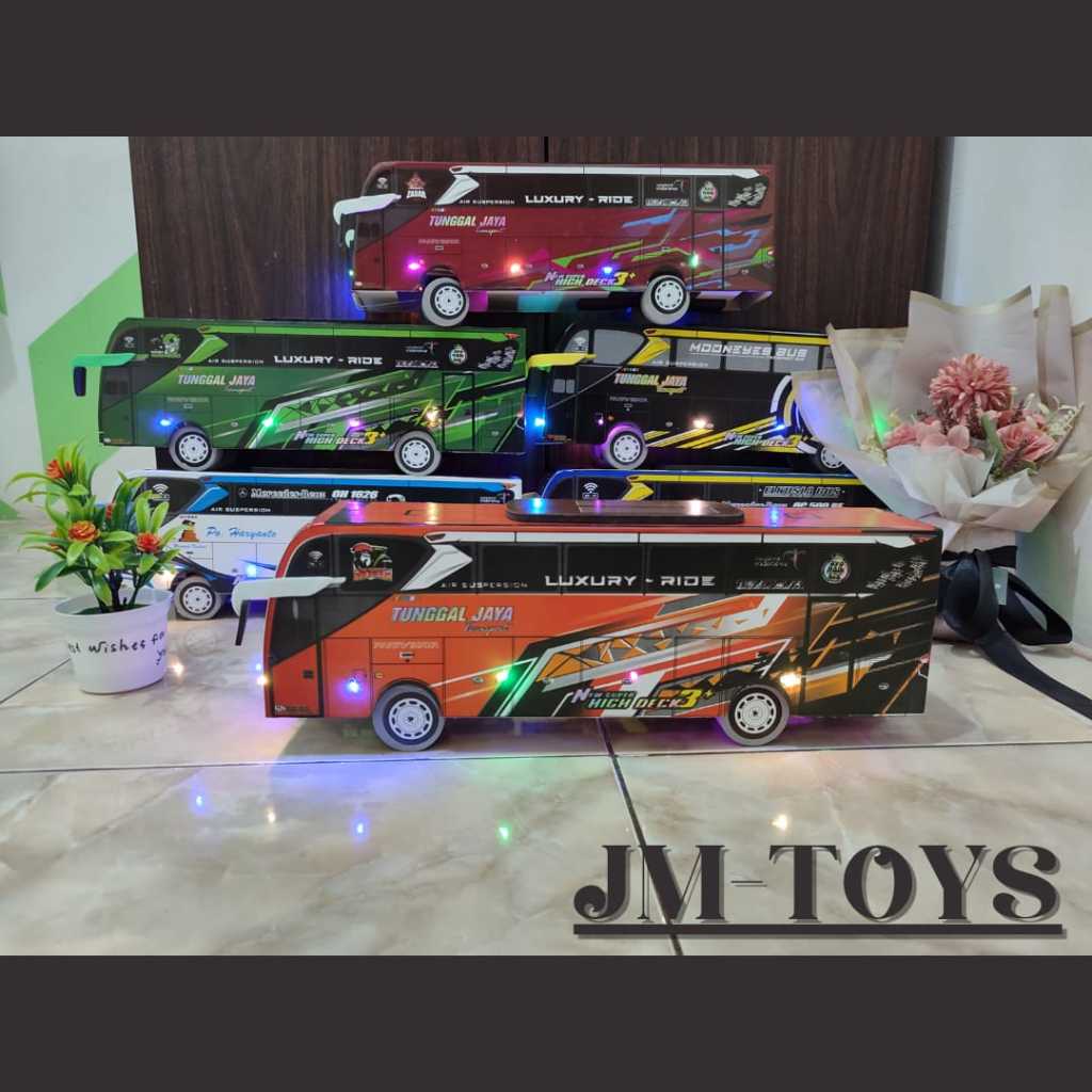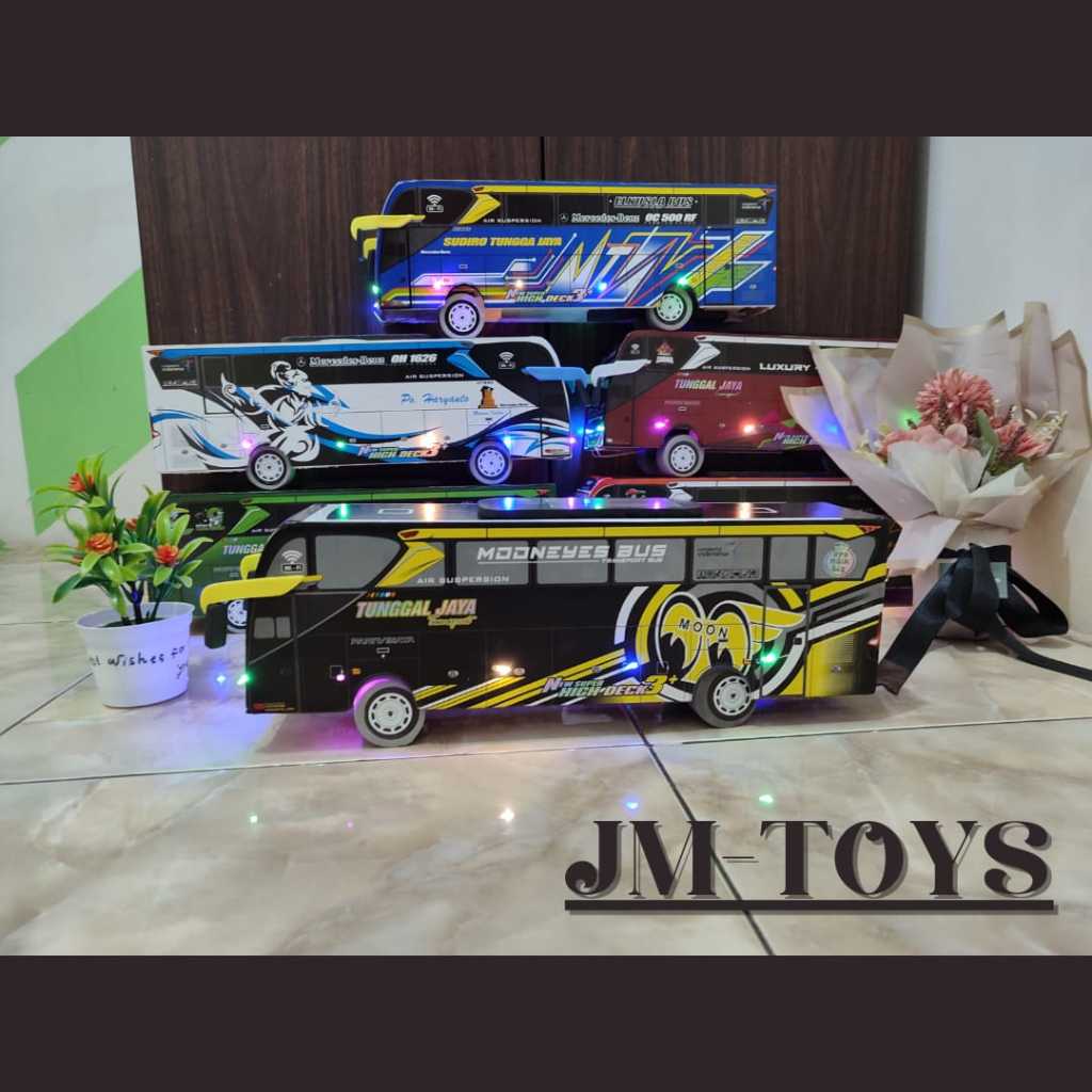 MAINAN MINIATUR MOBIL BUS TELOLET SUDIRO TUNGGAL JAYA DRAKA FULL LAMPU