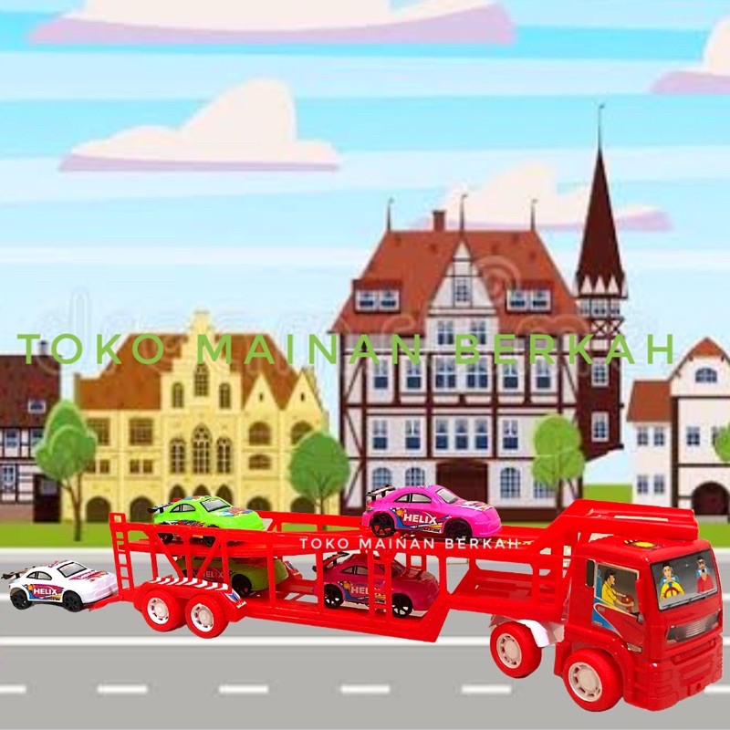 MAINAN MOBIL TRUCK KONTAINER ISI MOBIL 5pcs | TRUCK CONTAINER POWER ENGINE MOBIL 5pcs