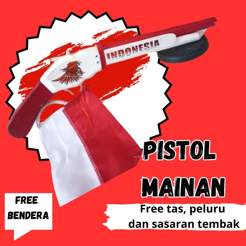 MAINAN PISTOL KAYU SG 2 MERAH PUTIH EDISI KEMERDEKAAN