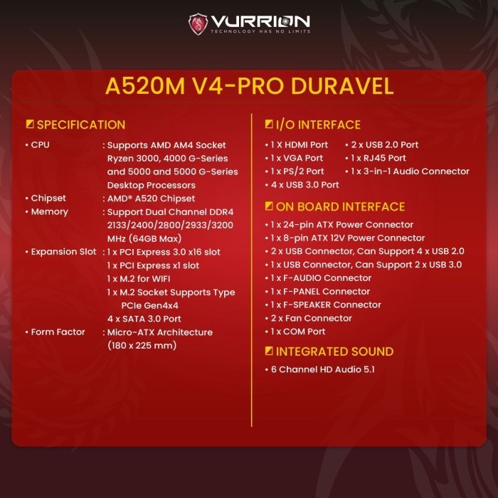 MAINBOARD MOBO MOTHERBOARD VURRION DURAVEL A520M V4-Pro AMD AM4 Socket Series