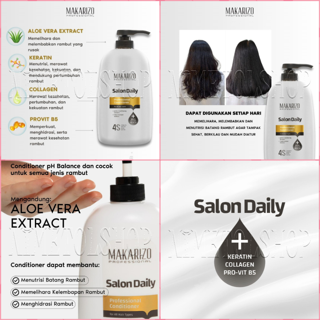 MAKARIZO Professional Salon Daily Shampoo 950ml Keratin Collagen Aloe NO SLS Paraben Rontok Ketombe
