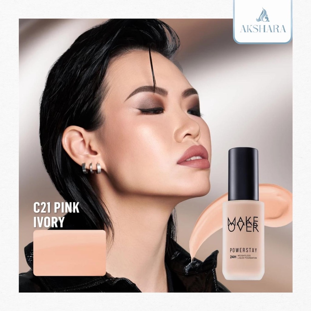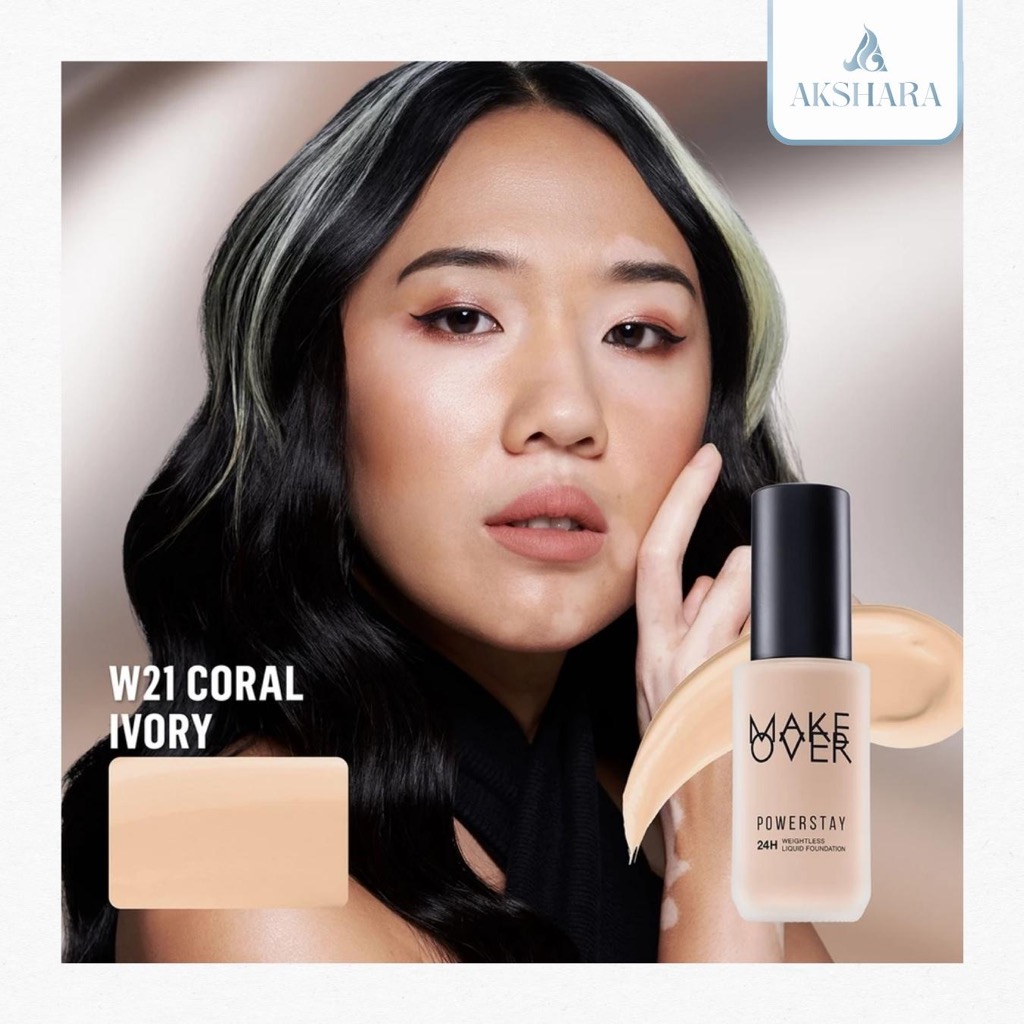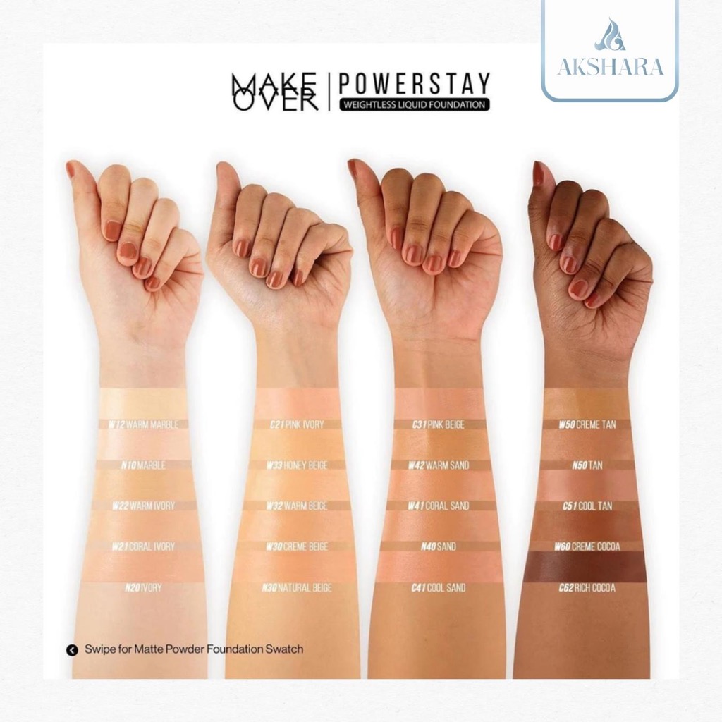 MAKE OVER POWERSTAY 24H Weightless Liquid Foundation - High coverage flawless ringan poreless oil control makeup tahan lama 24 jam