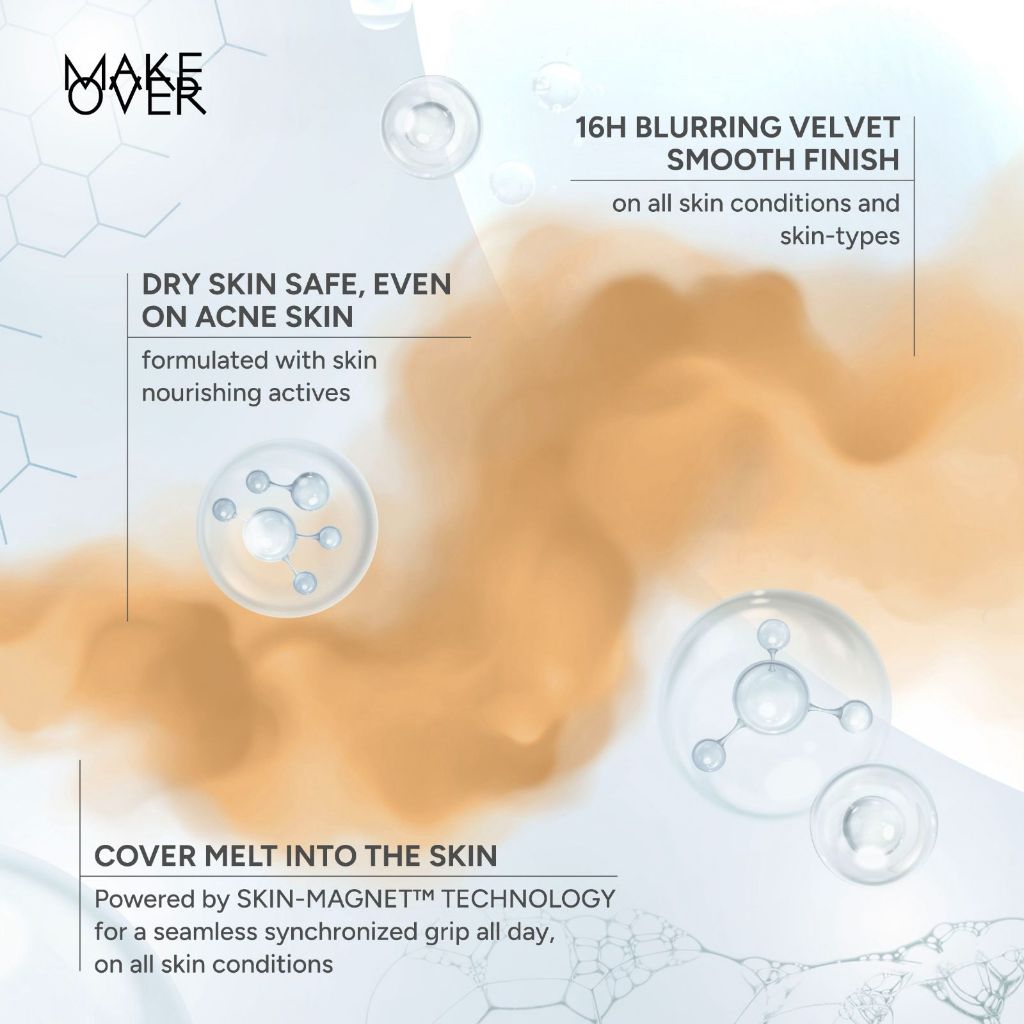 MAKE OVER Perfect Cover Powder Foundation - TWC Two Way Cake Cover Melt and Blur Powder 16H Blurring Velvet Smooth Finish