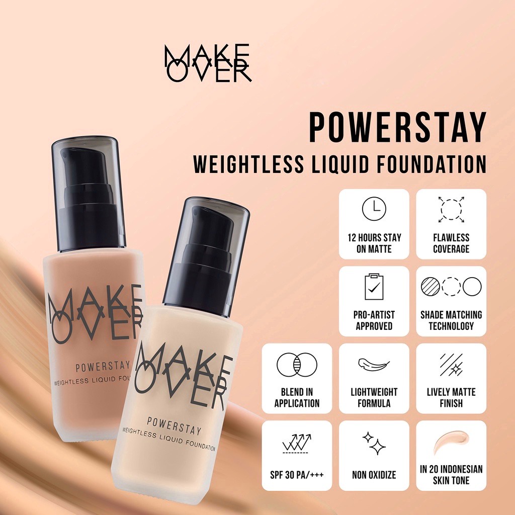 MAKE OVER Powerstay 24H Weightless Liquid Foundation - High Coverage Wajah Flawless Ringan Poreless Oil