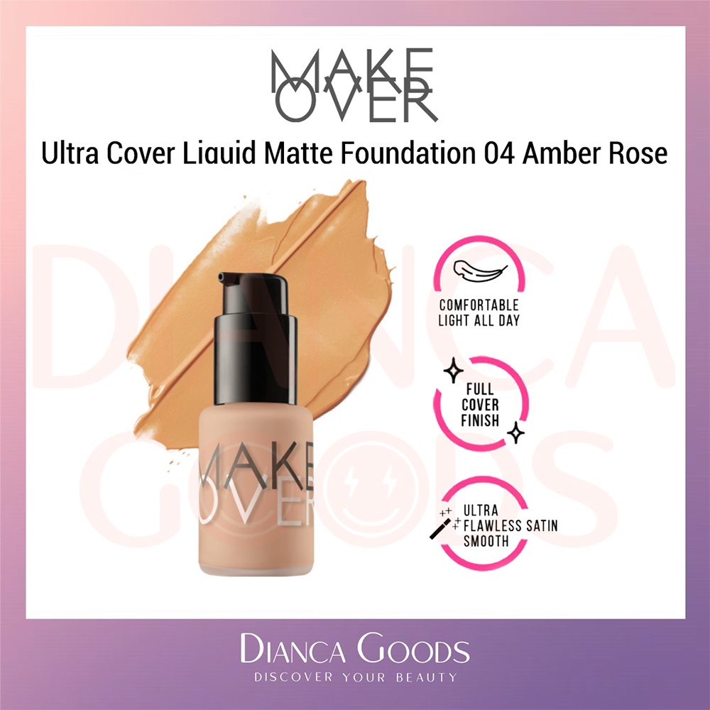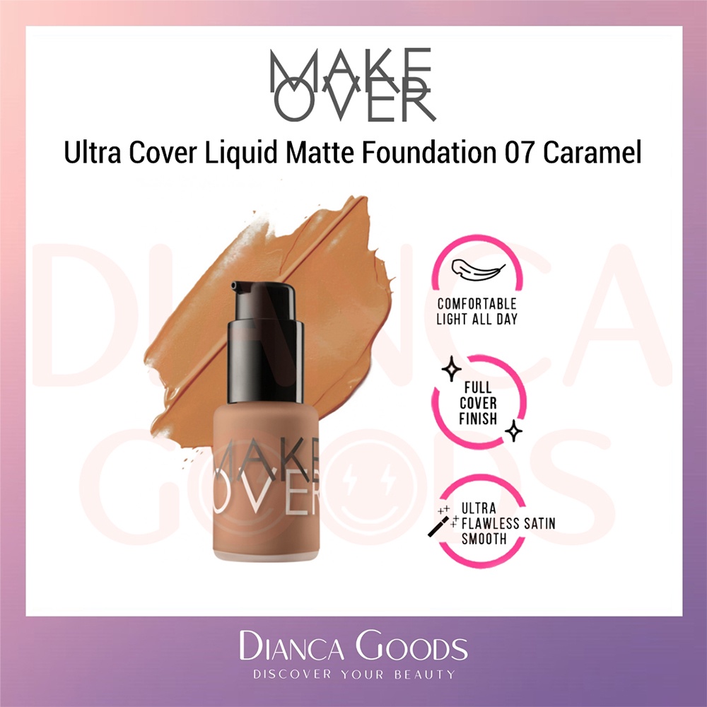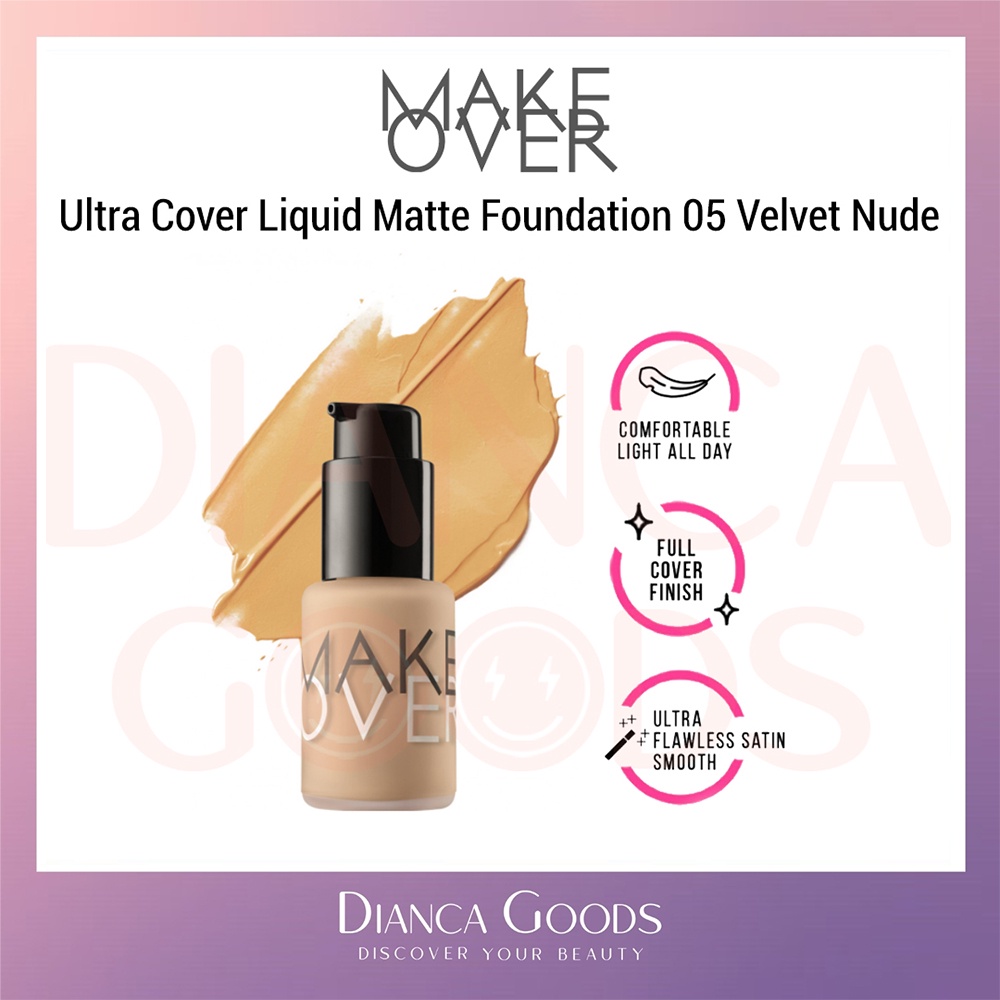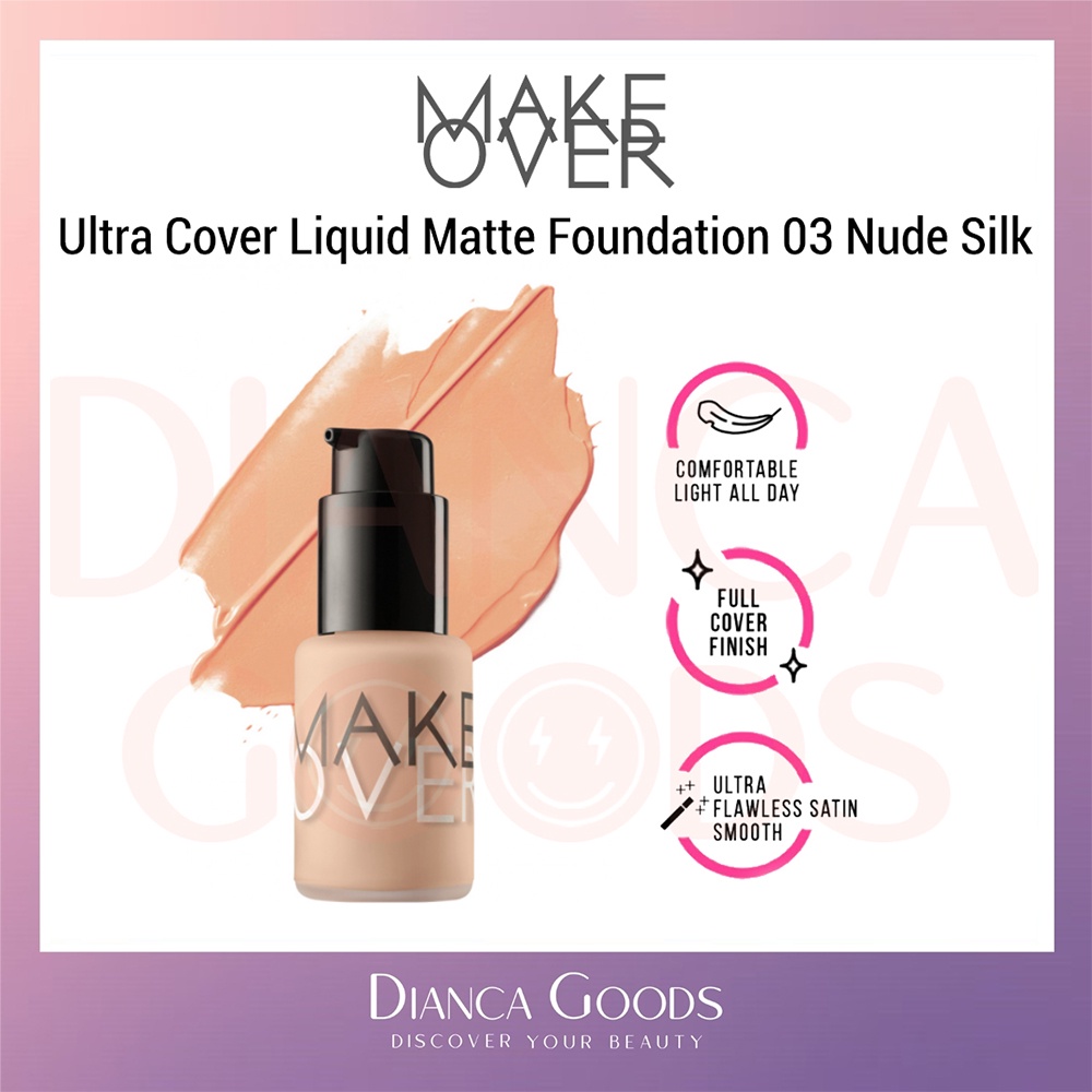 MAKE OVER Ultra Cover Liquid Matte Foundation All Shade Ochre / Pink Shade / Nude Silk / Amber Rose / Velvet Nude / Beige Blast / Caramel / Pearl / Creme Rose 33 ml | Matte Foundation Makeover BKL