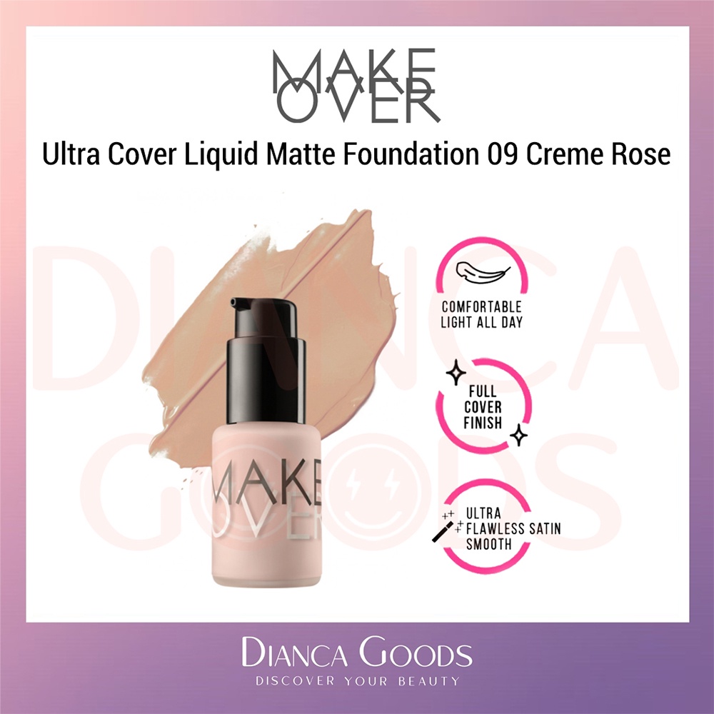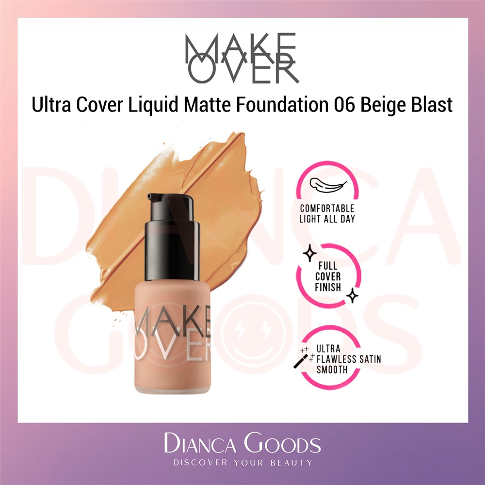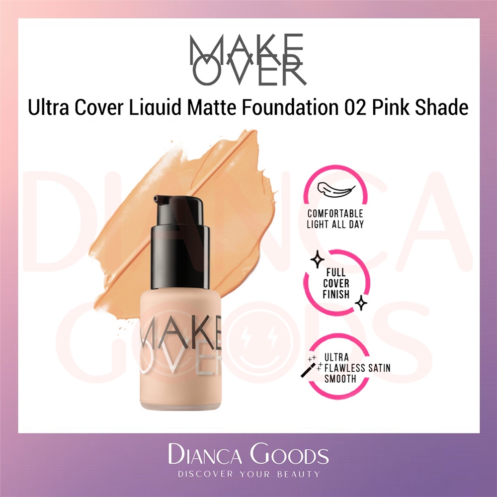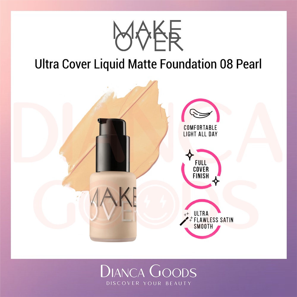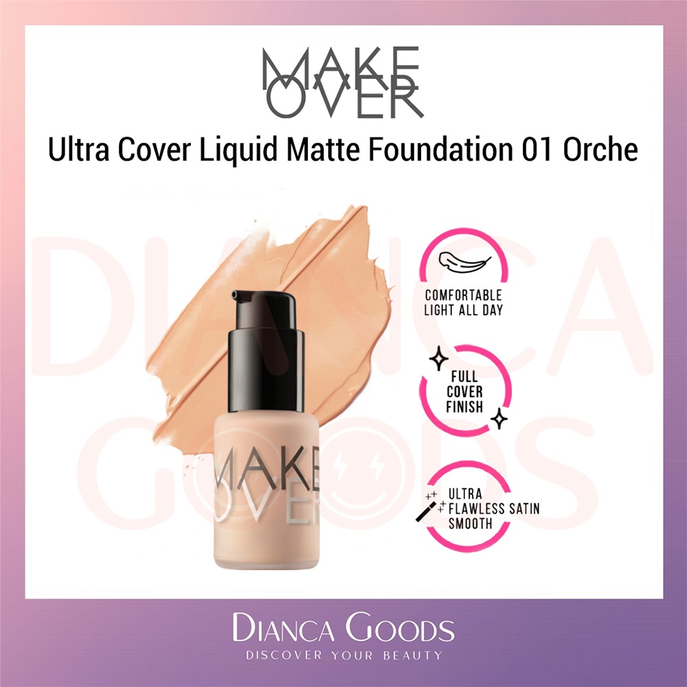MAKE OVER Ultra Cover Liquid Matte Foundation All Shade Ochre / Pink Shade / Nude Silk / Amber Rose / Velvet Nude / Beige Blast / Caramel / Pearl / Creme Rose 33 ml | Matte Foundation Makeover BKL