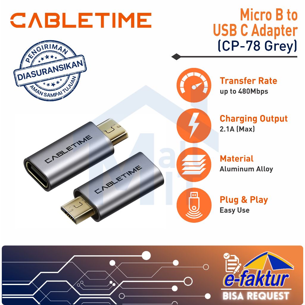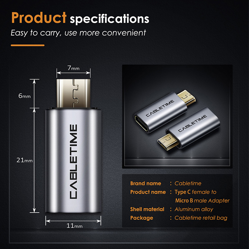 MALLIT CABLETIME Adapter OTG Micro USB Male to USB-C Female OTG Extender 480Mbps Aluminum Premium Portable CP78