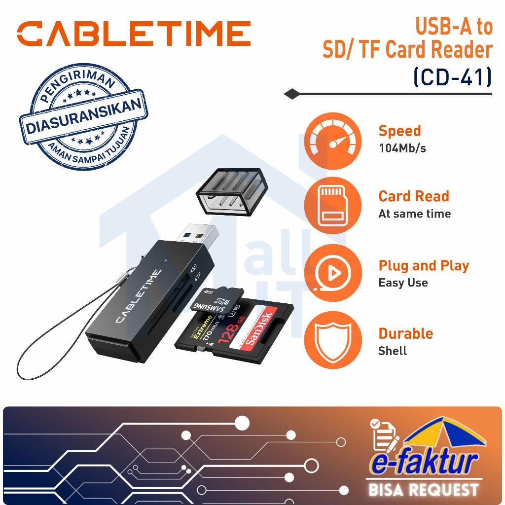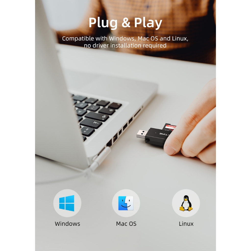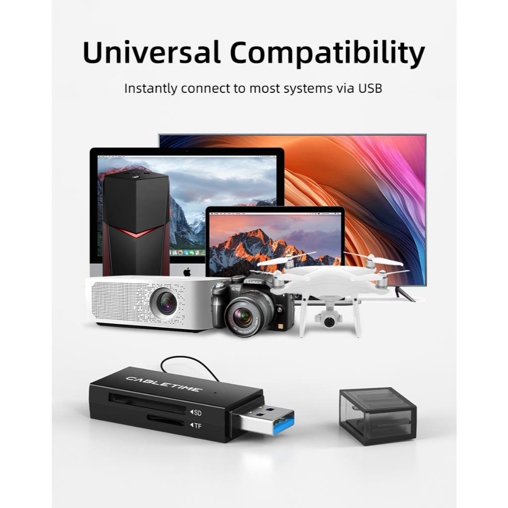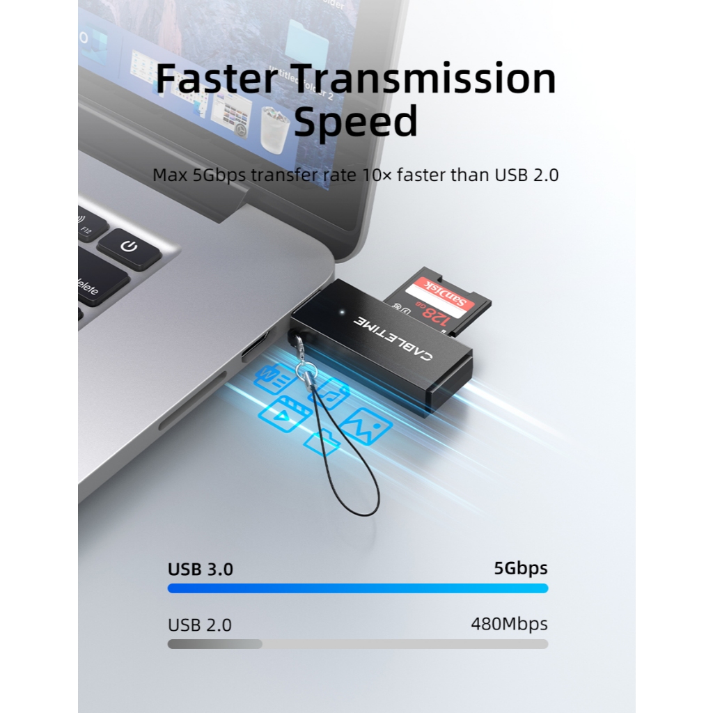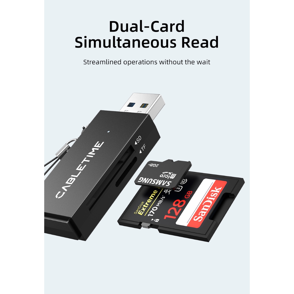 MALLIT CABLETIME Card Reader USB A 3.0 TF SD Card Micro SD 5Gbps Super Speed Data Sync Multifunction CD41G