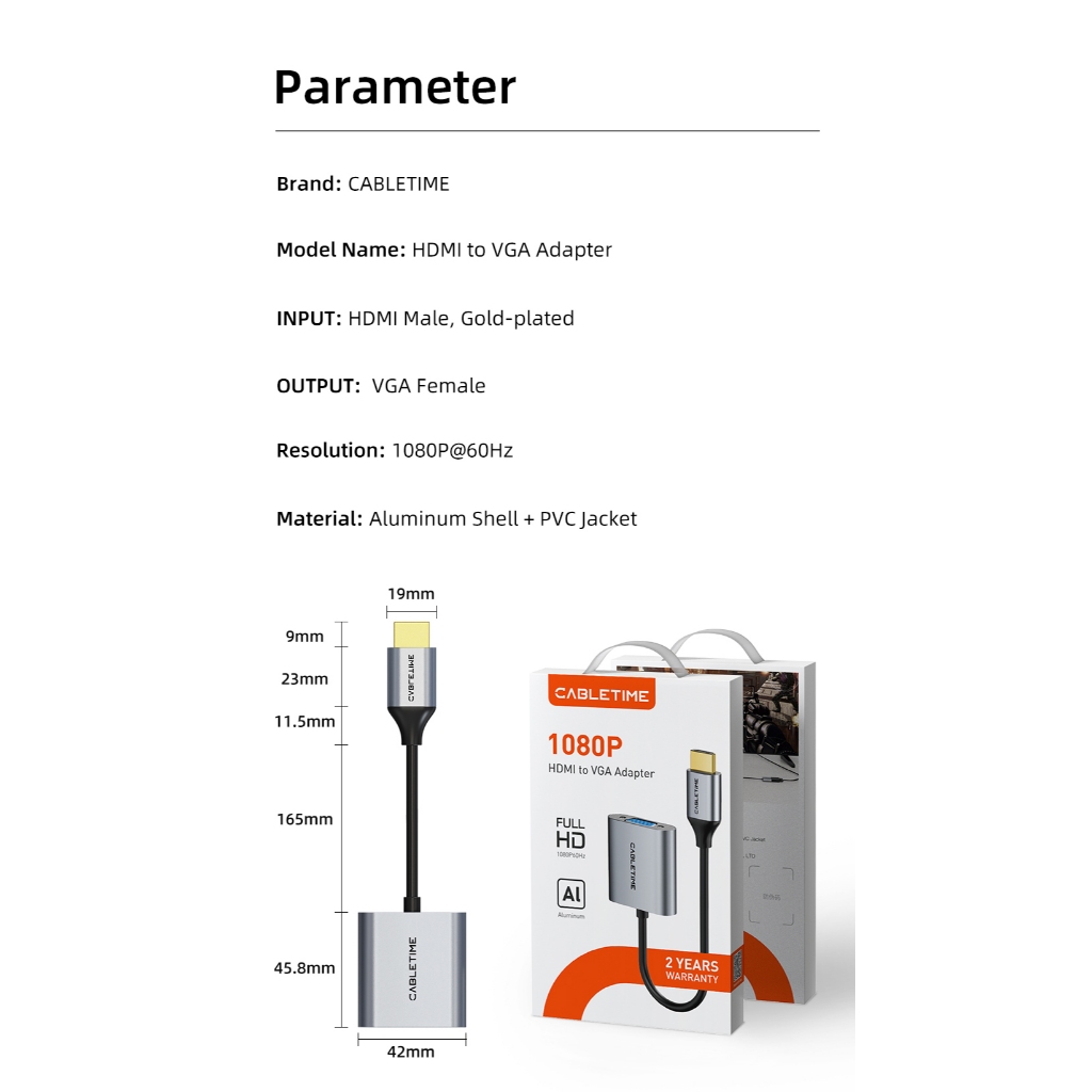 MALLIT CABLETIME Converter HDMI to VGA Adapter FHD Full HD 1080p @60Hz CP53