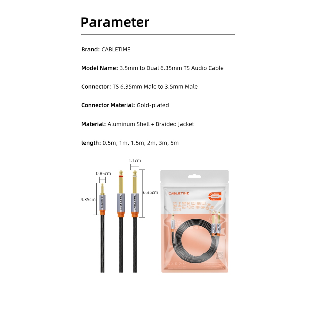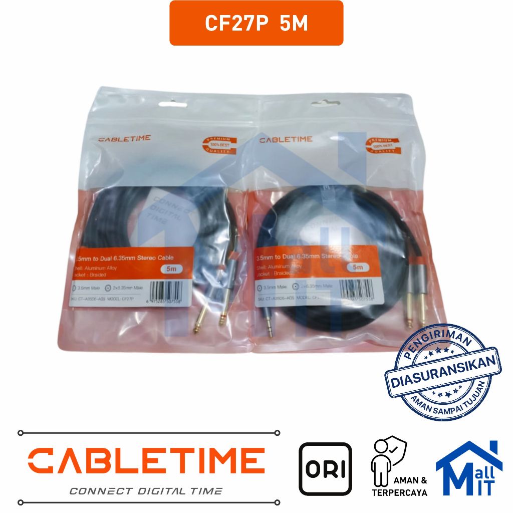 MALLIT CABLETIME Kabel Aux 3.5mm to Dual 6.5mm Male to Male Aux Splitter CF27