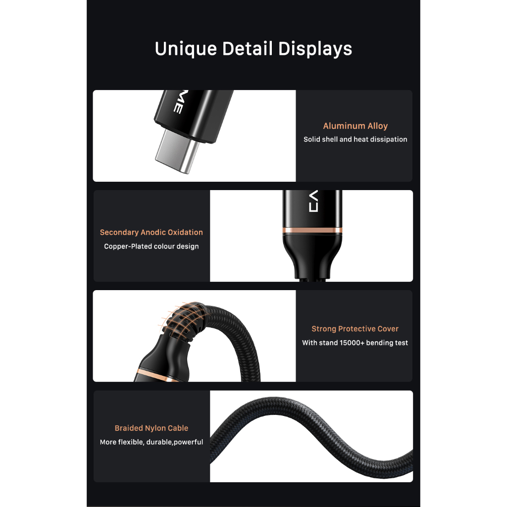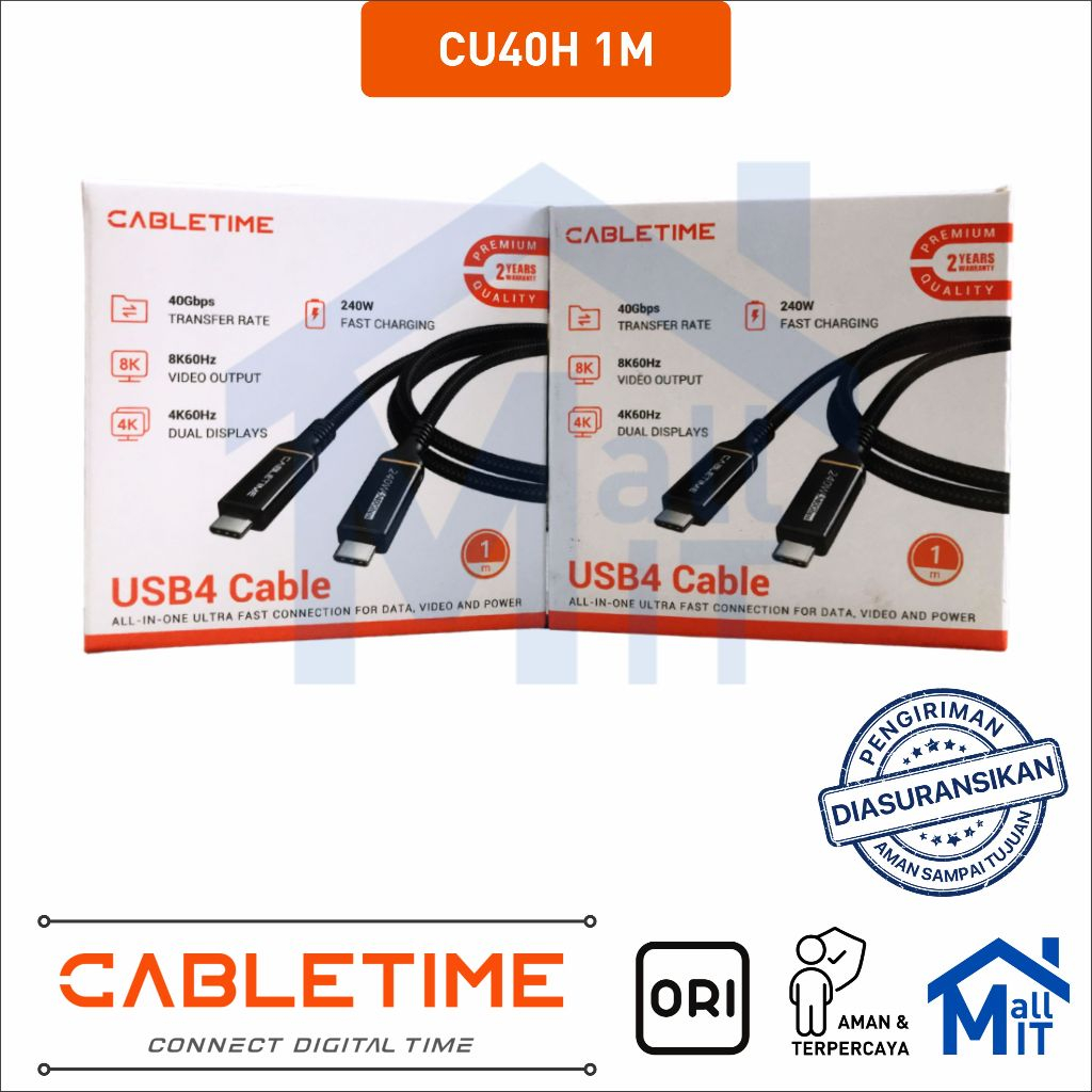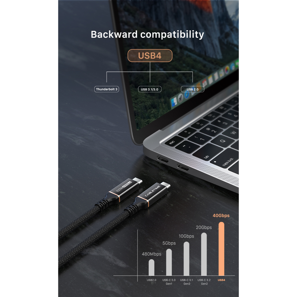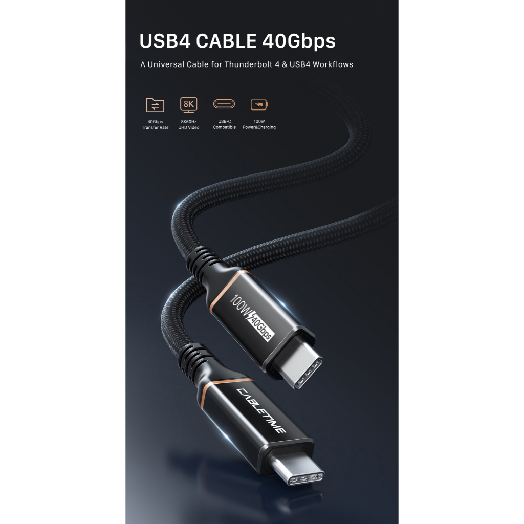 MALLIT CABLETIME Kabel Data USB C Thunder Bolt 8K PD 100W 240W 40Gbps High Speed Data Transfer Braided CU40