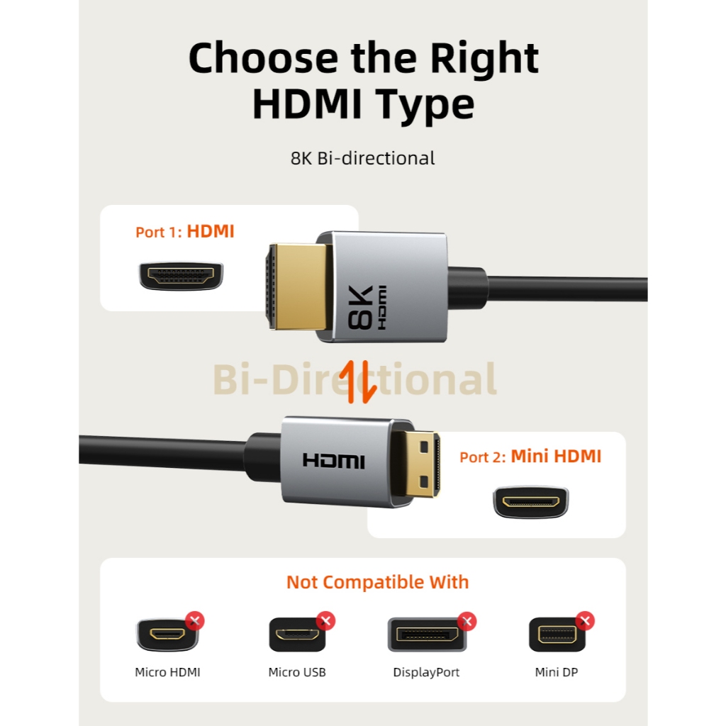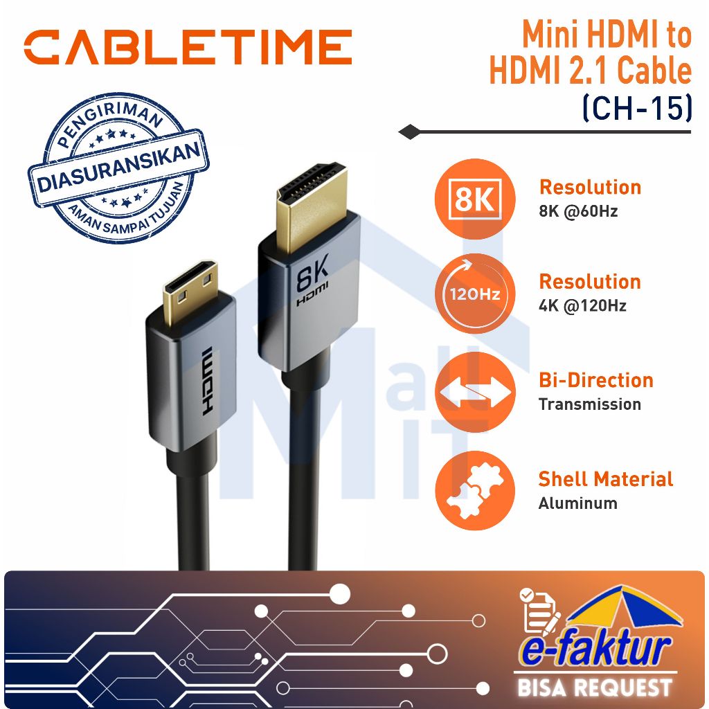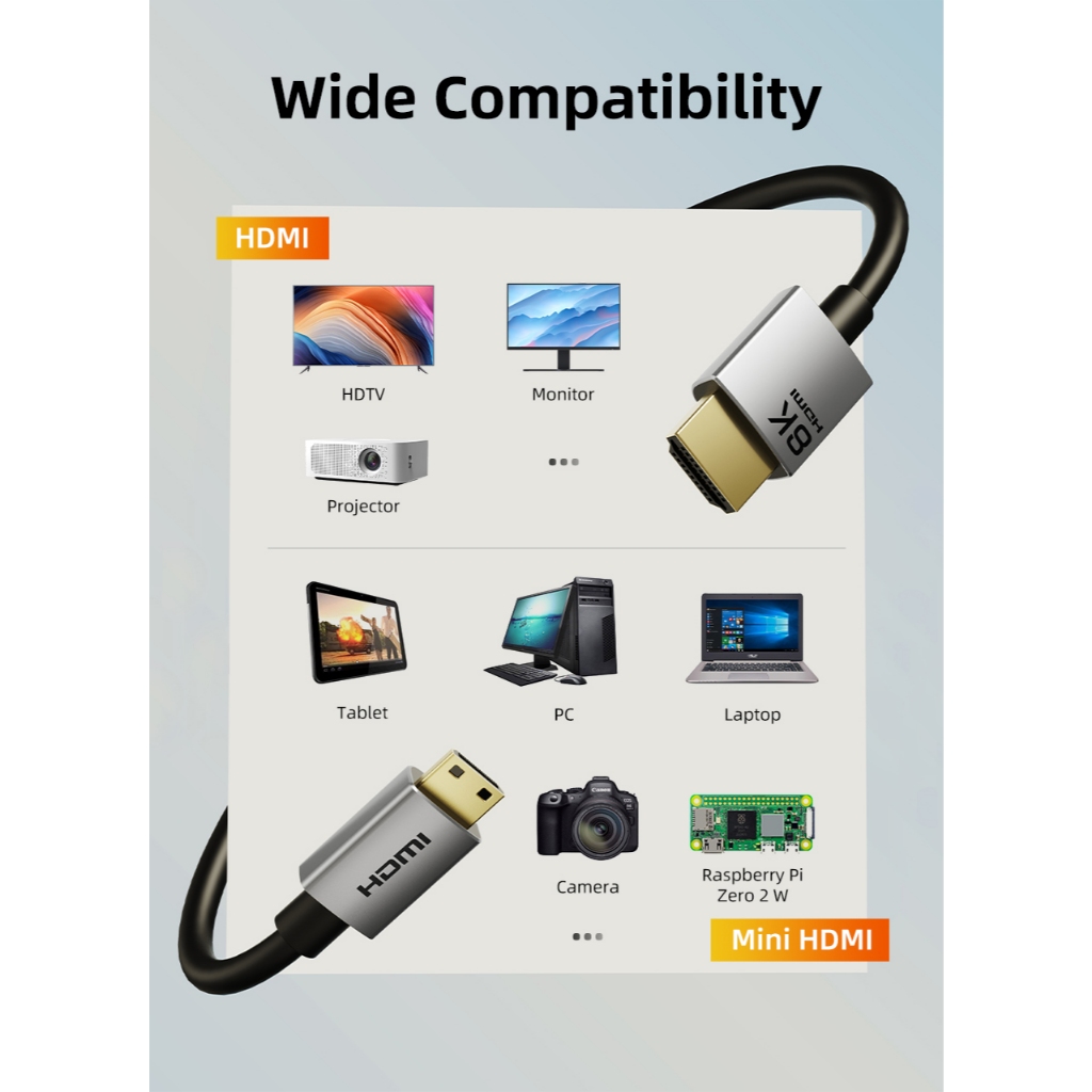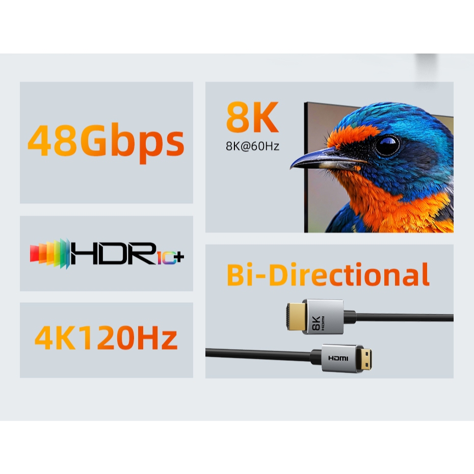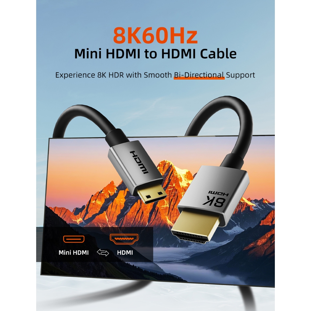 MALLIT CABLETIME Kabel Mini HDMI to HDMI Male 8K @60Hz 4K @120Hz Dynamic HDR 48Gbps for Camera CH15