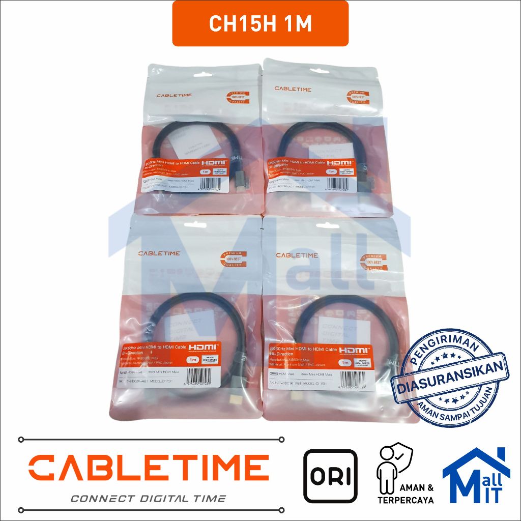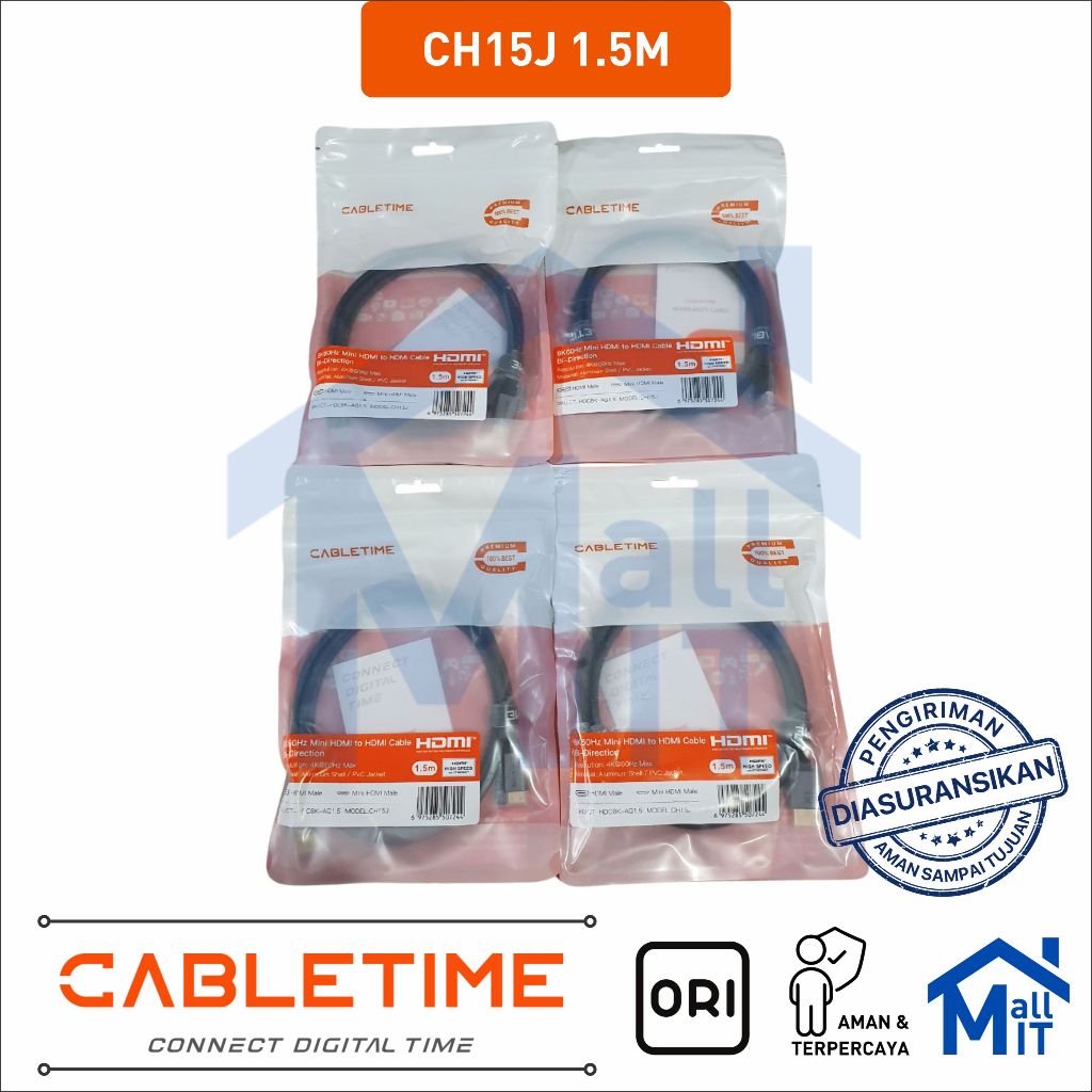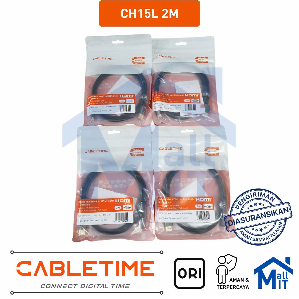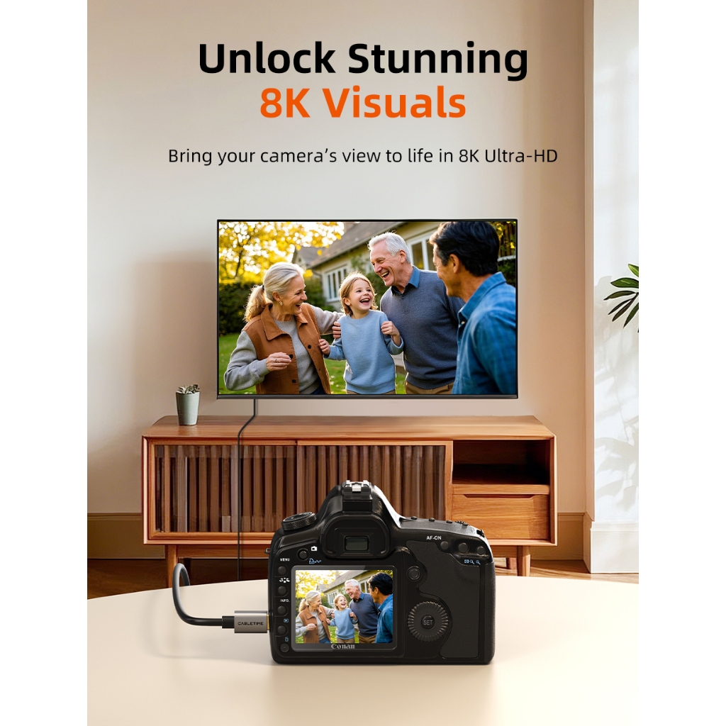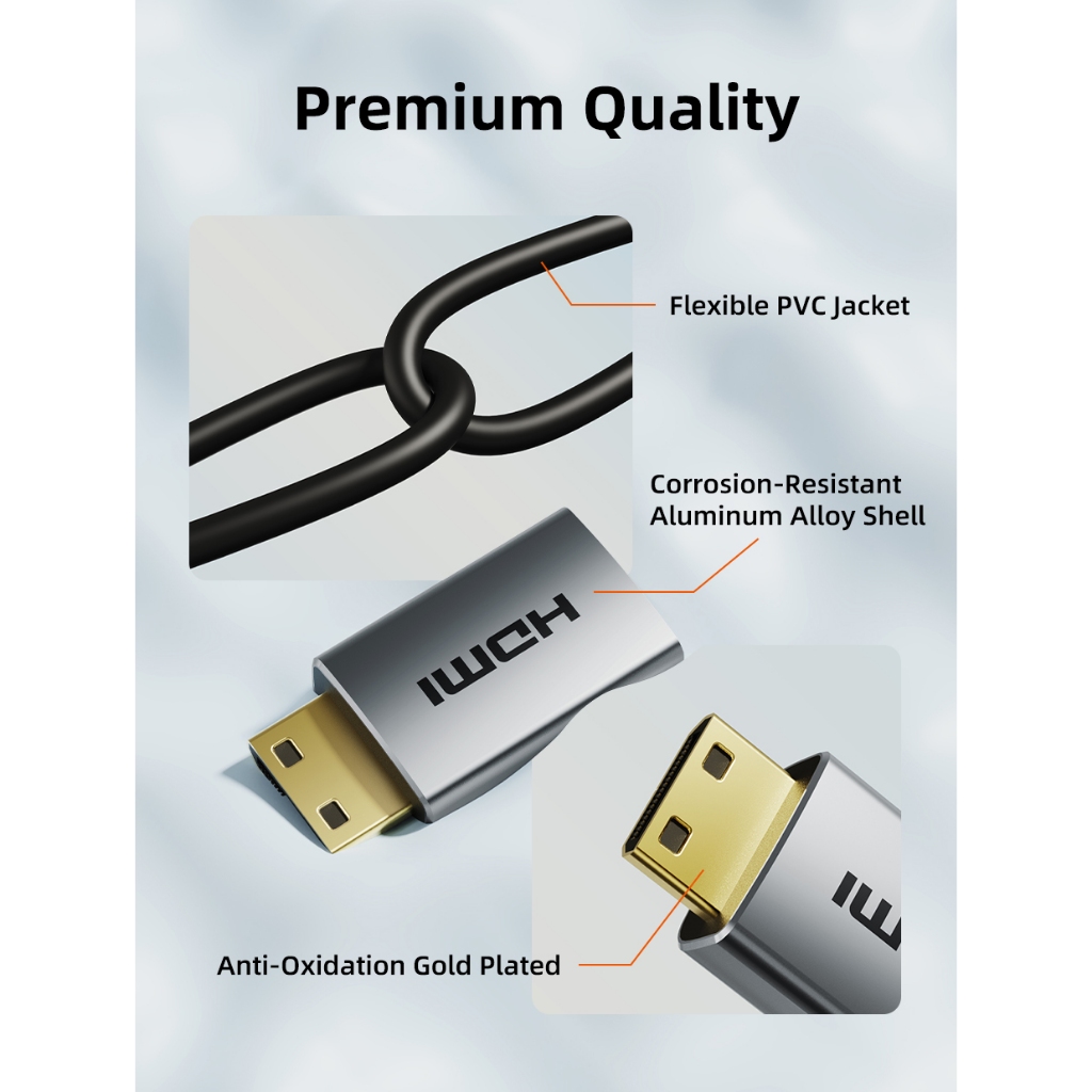 MALLIT CABLETIME Kabel Mini HDMI to HDMI Male 8K @60Hz 4K @120Hz Dynamic HDR 48Gbps for Camera CH15