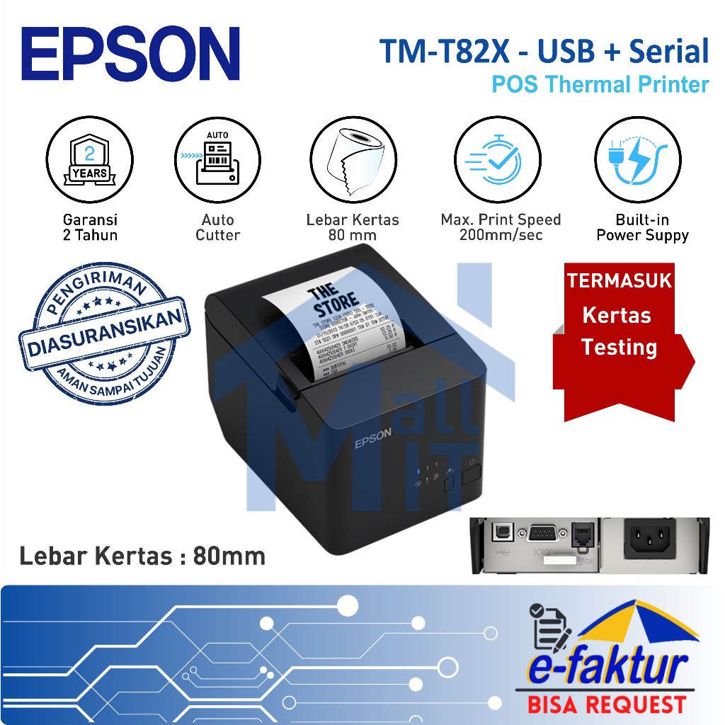MALLIT EPSON Printer Kasir Epson TM-T82X TMT82X THERMAL Usb/Serial TMT82 X TM-T82 X GaransiI Resmi Medan