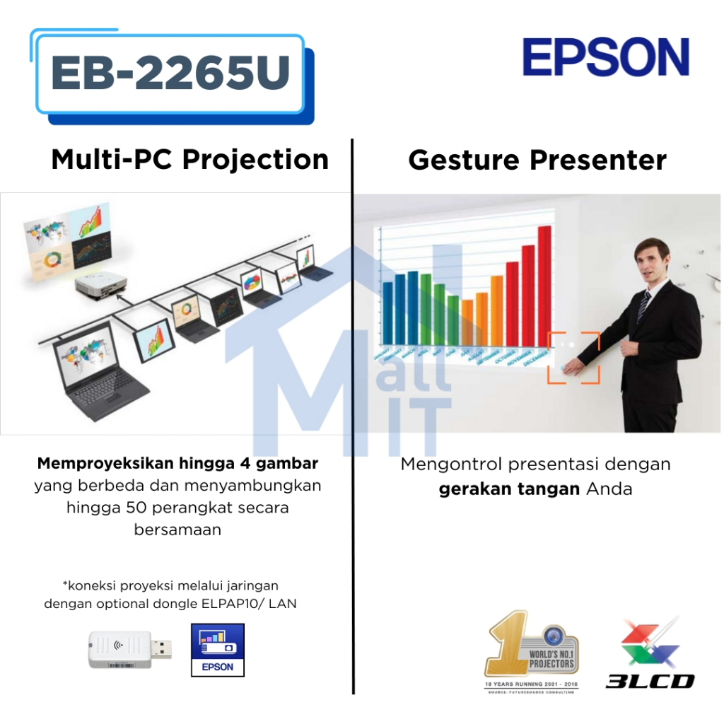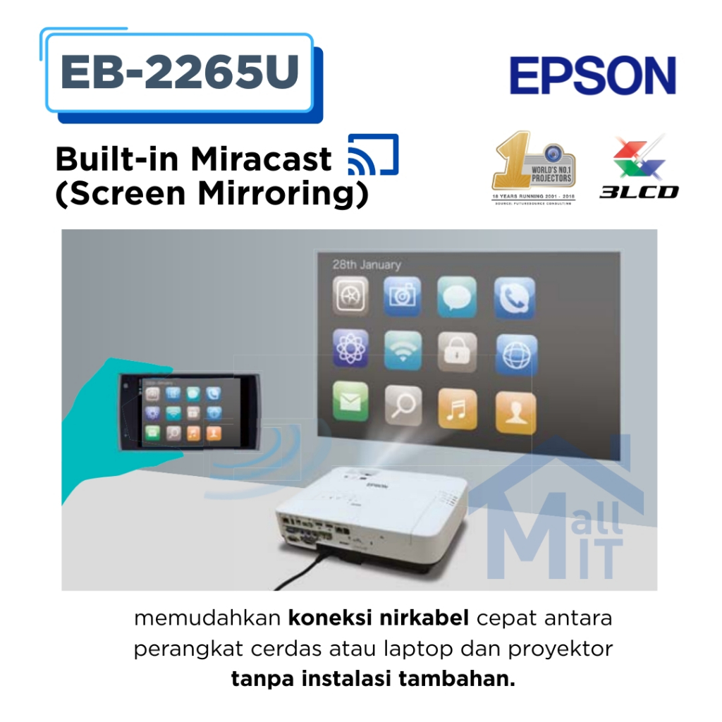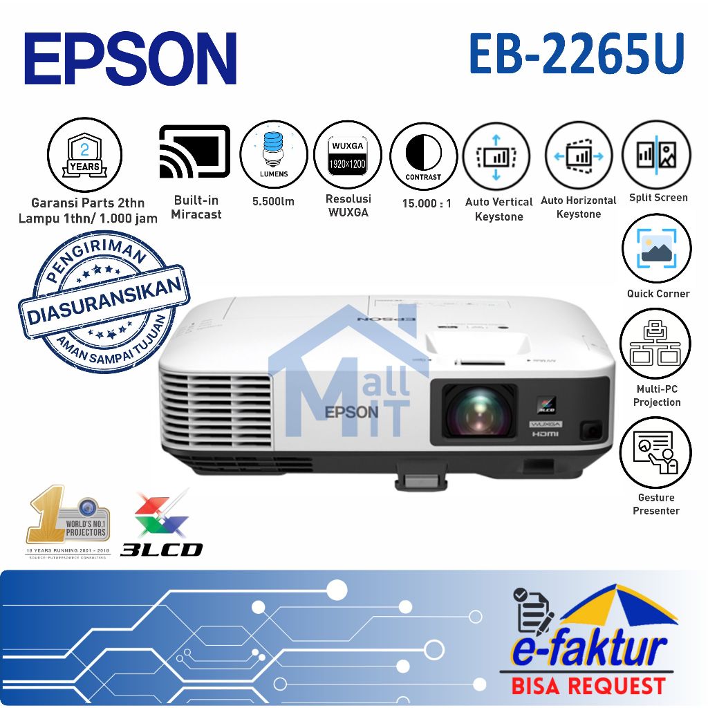 MALLIT EPSON proyektor EPSON EB-2265U EB2265U 2265U EB 2265 U WUXGA Garansi Resmi Medan