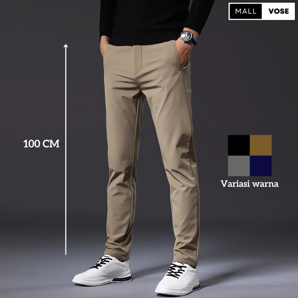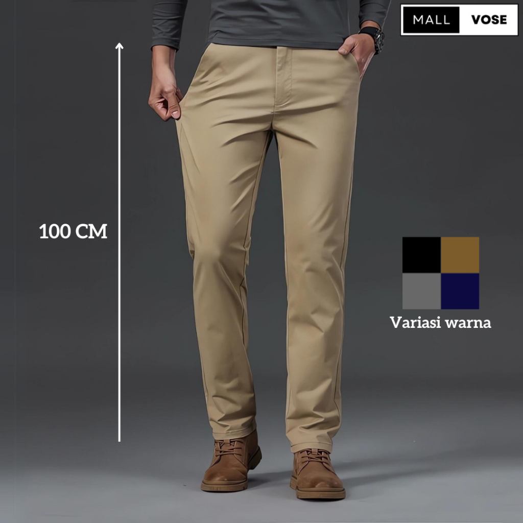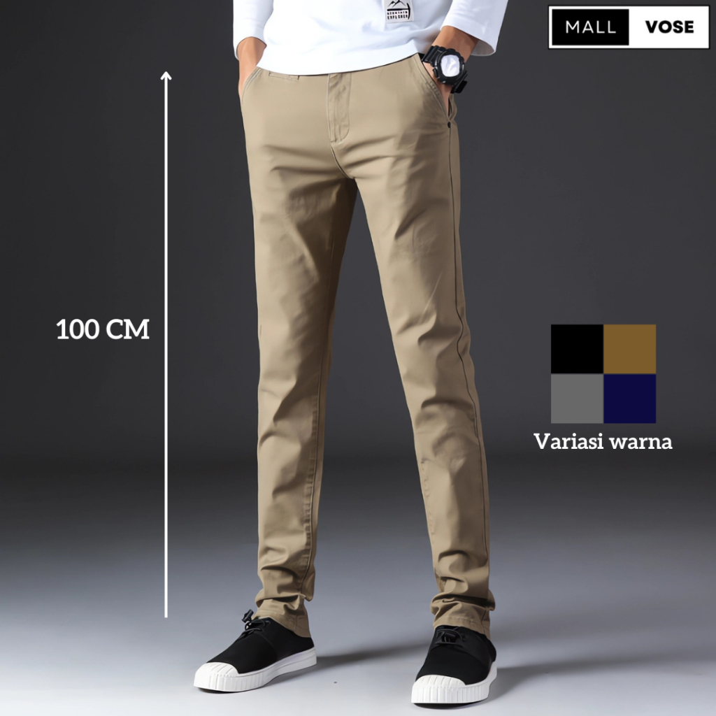 MALLVOSE - Chino Long Pants Celana Pria Mocca Strech Adem