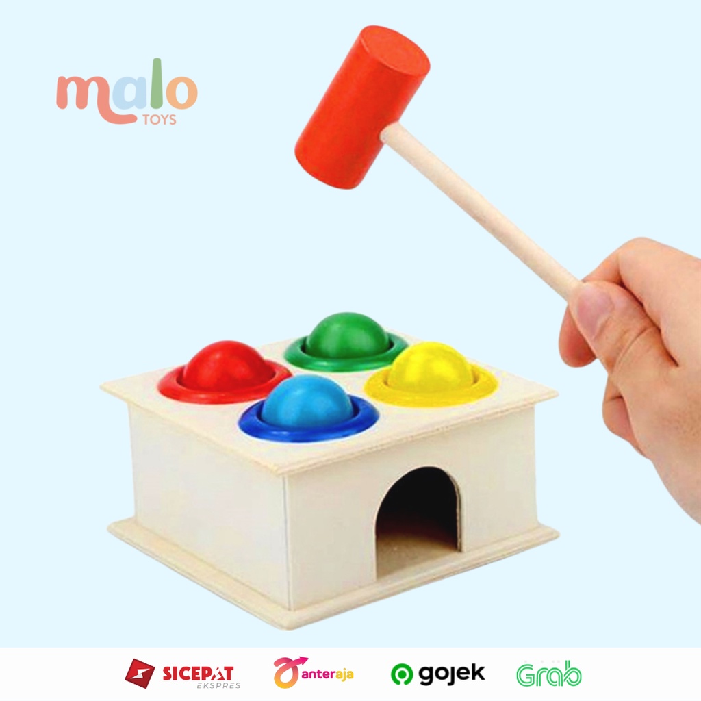 MALOTOYS - Ball Hammer Wooden Box Mainan Edukasi Kayu Pukul Palu Kotak Hammering Shape Wood Toys