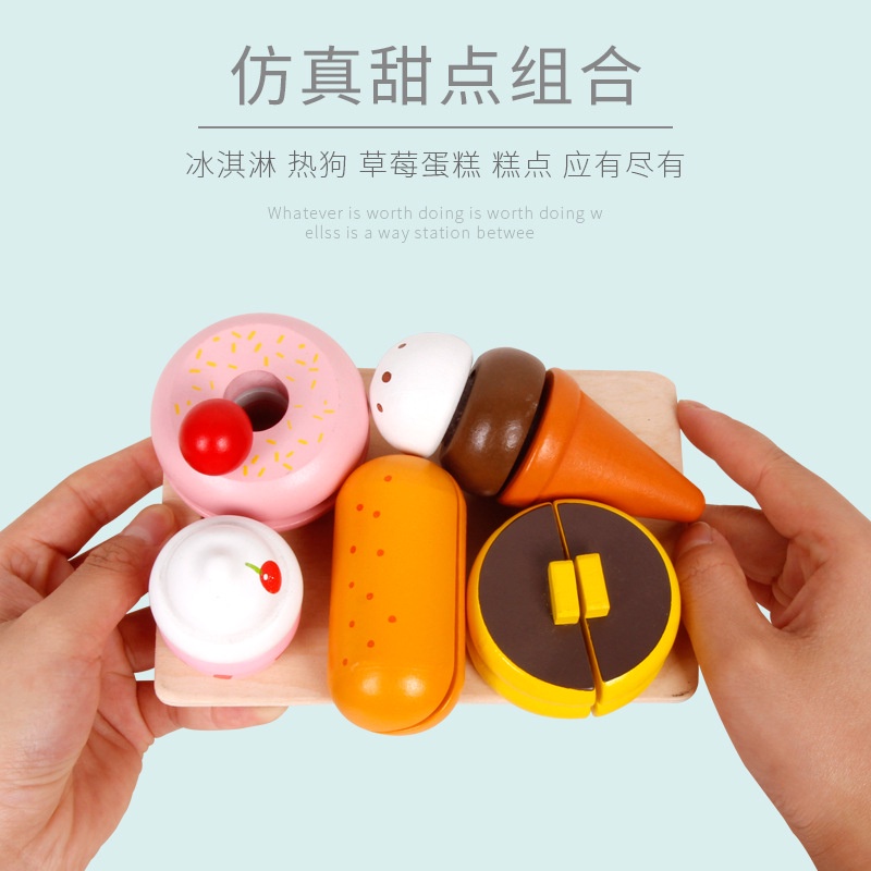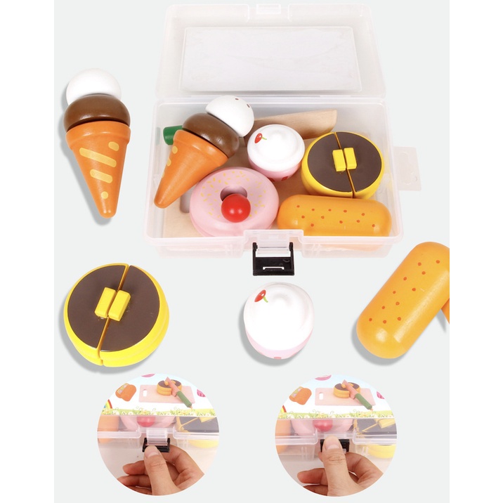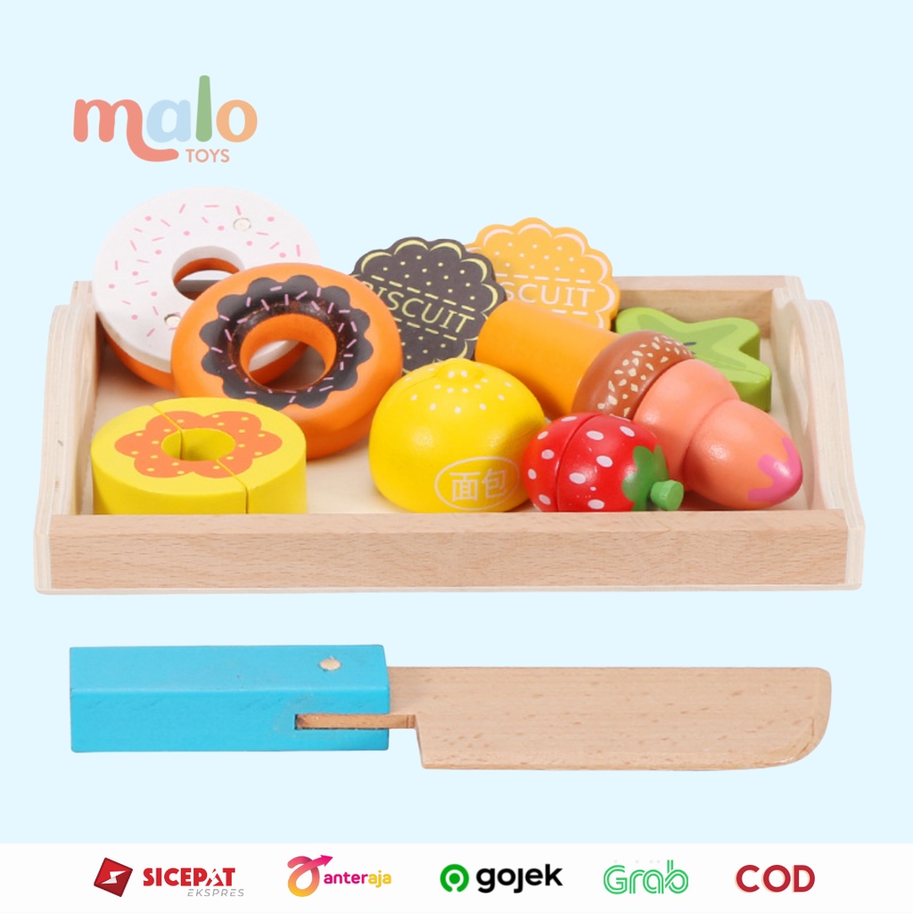MALOTOYS - Cutting Donut Wooden Toys Ice Cream Tray Mainan Kayu Buah Fruit Cake Es Krim Kue Donat Potong Pretend Play Malo Toys
