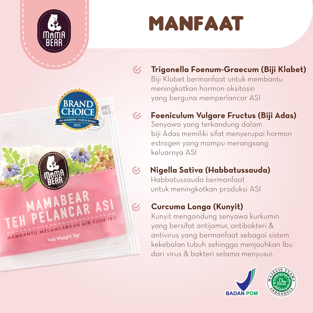 MAMABEAR Teh ASI Booster Tea Penambah Pelancar ASI Mama Bear Teh Box Rasa Original Blueberry / MAMABEAR BANDUNG