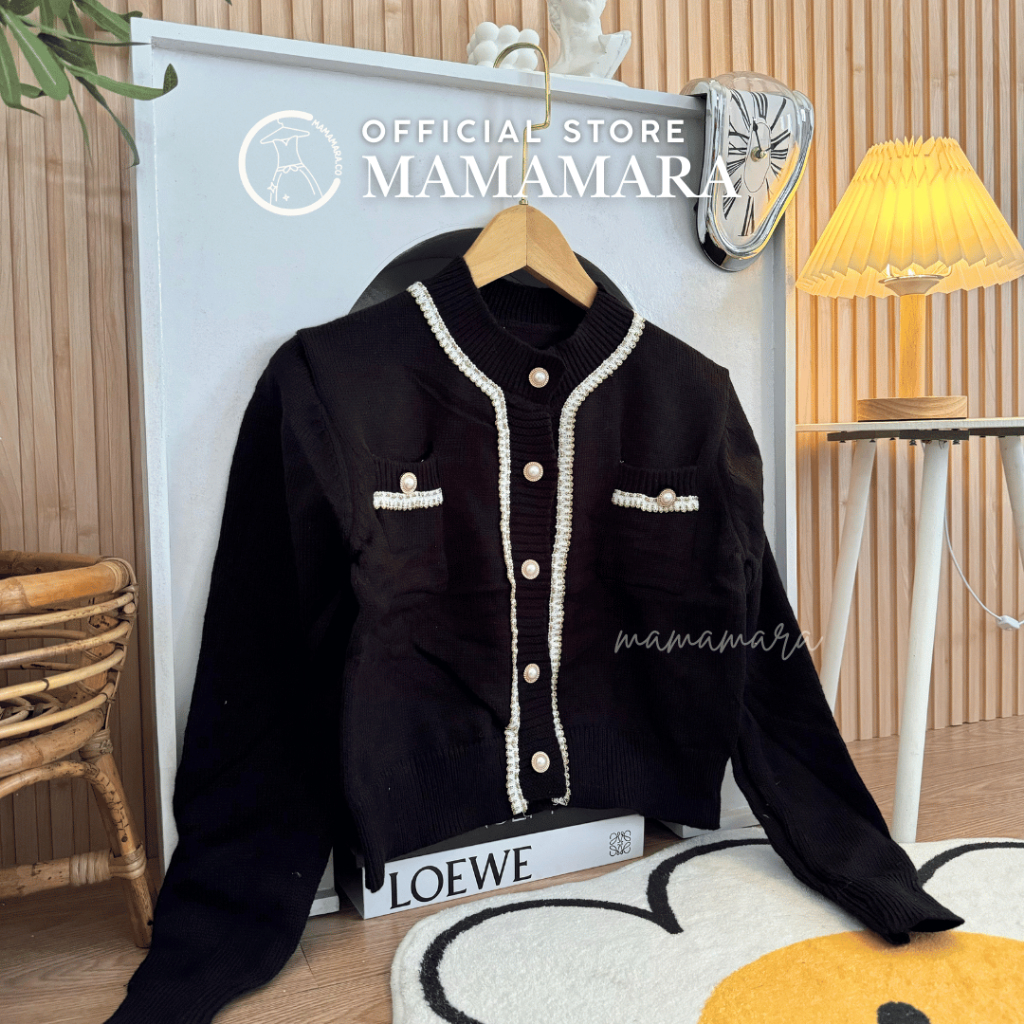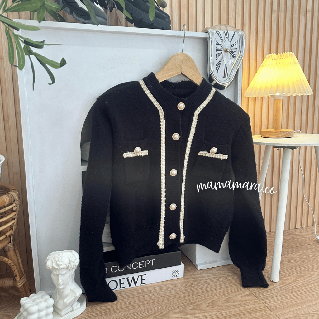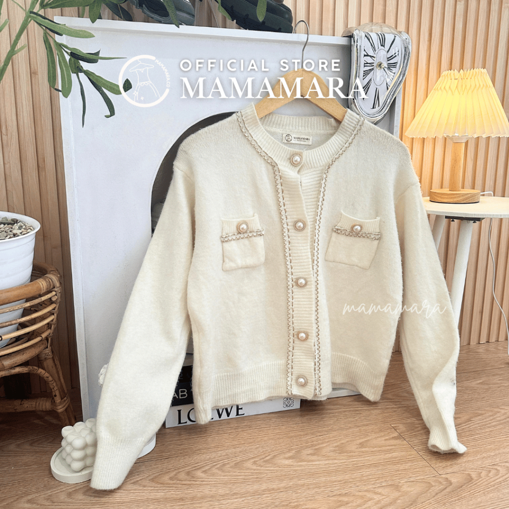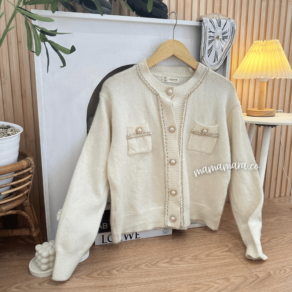 MAMAMARA - Cardigan Wol Rajut Korean Style Lis Full Mutiara