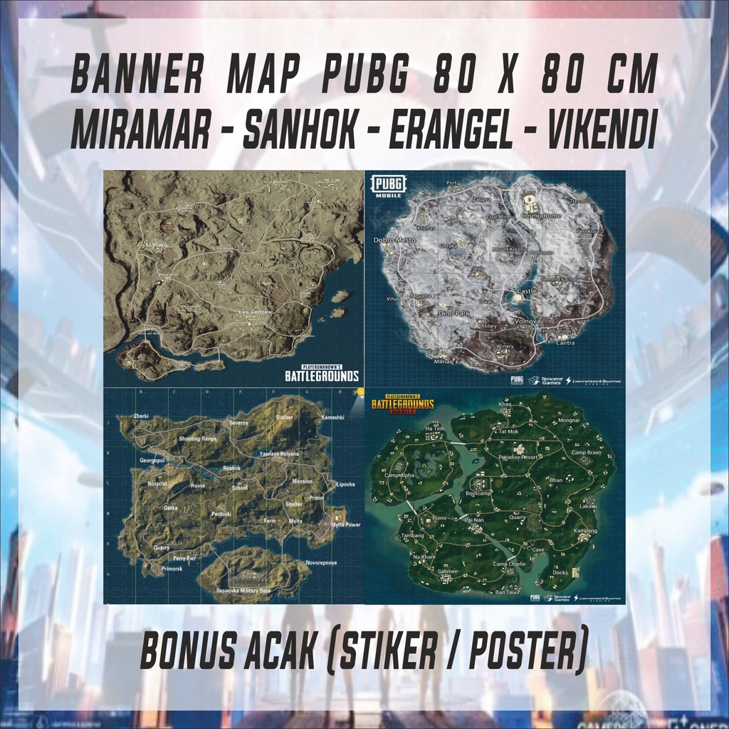 MAP PUBG MOBILE 80x80 cm PETA MIRAMAR SANHOK ERANGEL VIKENDI