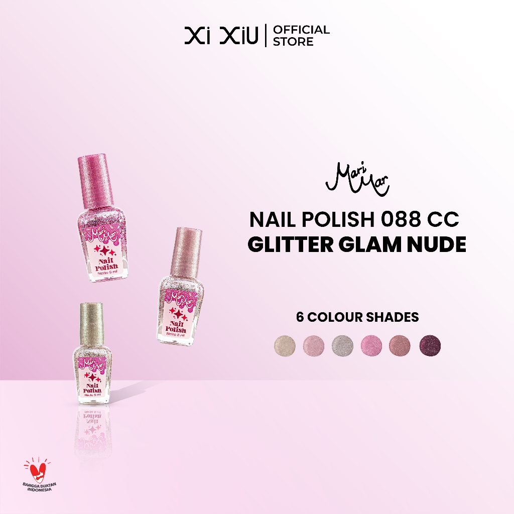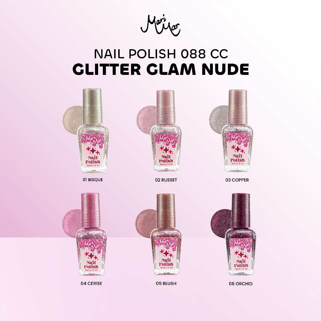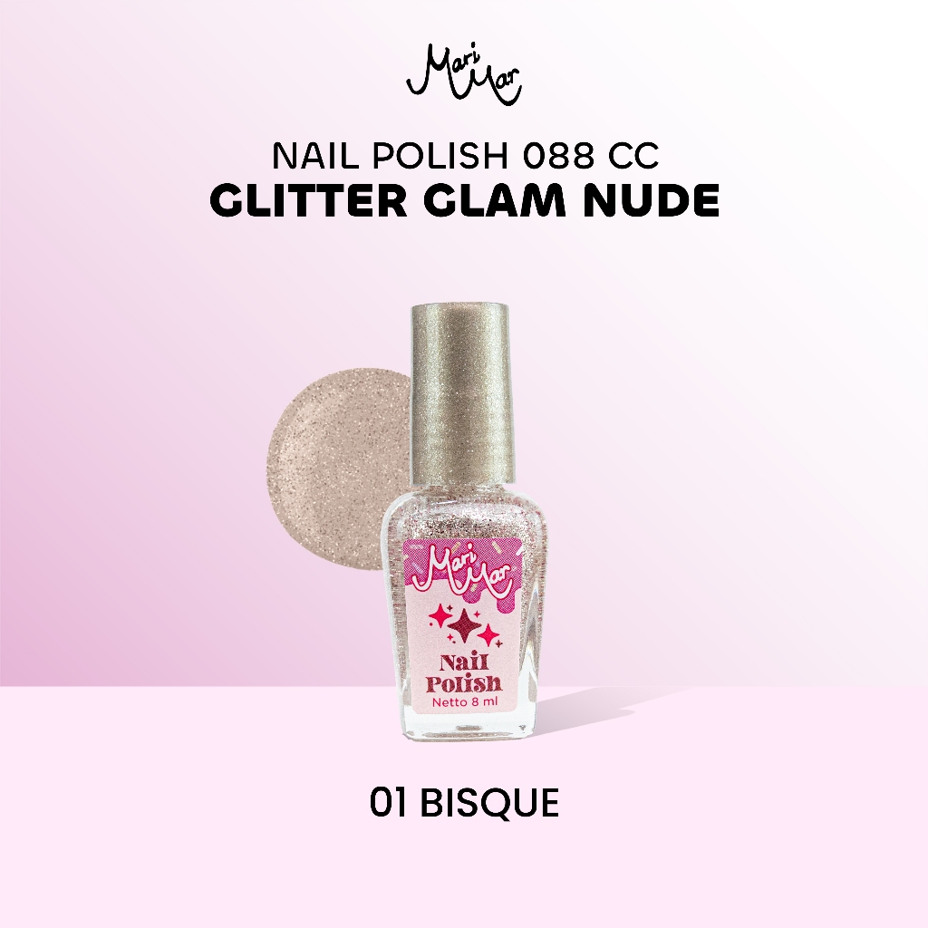 MARIMAR Nail Polish ( Glitter Glam Nude ) 088 CC | Kutek Bening Cepat Kering Tahan Lama & Mudah Dibersihkan