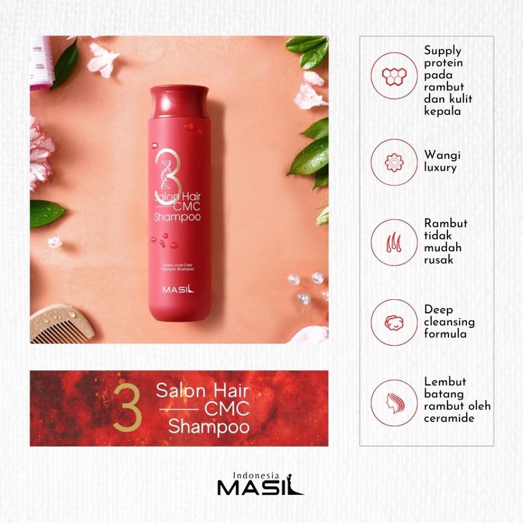 MASIL- 3 Salon Hair CMC Shampoo | 2in1 Shampoo & Perawatan | Atasi Rambut Rontok, Kering & Bercabang