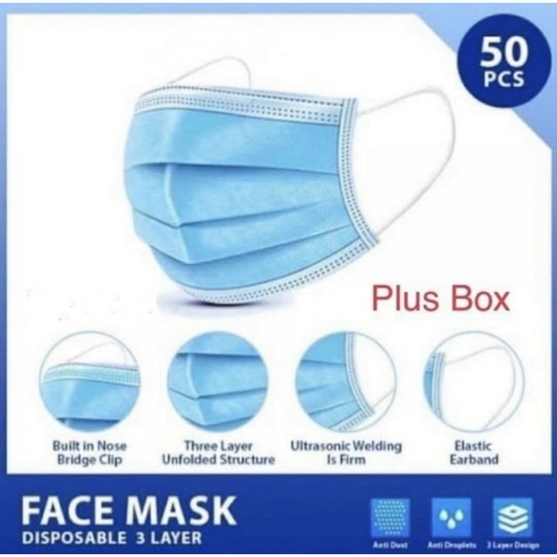 MASKER 3PLY BIRU EARLOOP MEDICAL (50pcs)