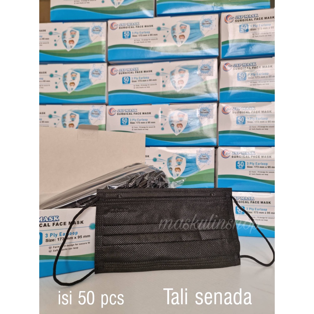 MASKER 3PLY HITAM/ MASKER EARLOOP PREMIUM 3 LAPIS 1 BOX ISI 50 PCS/ MASKER EARLOOP XTRA TEBAL WARNA HITAM