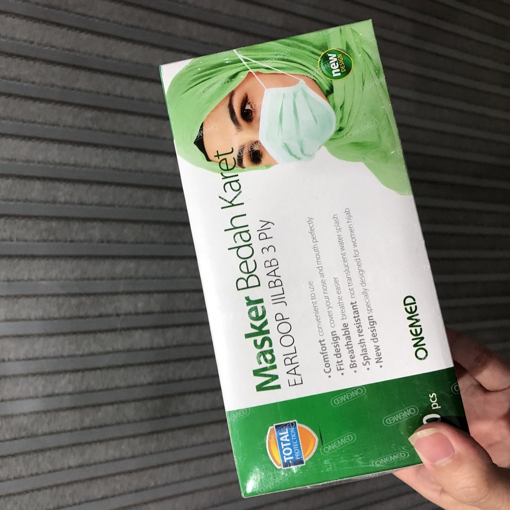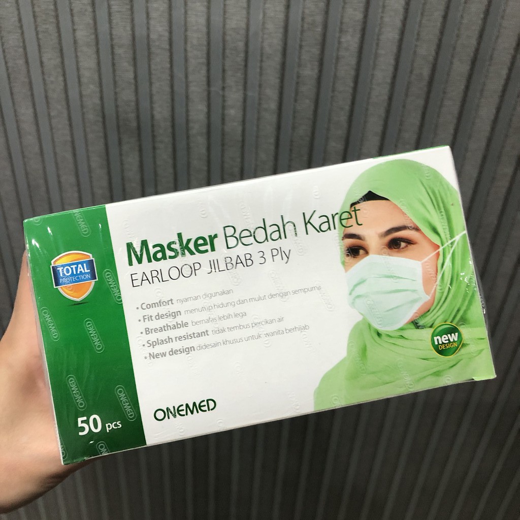 MASKER BEDAH KARET ONEMED EARLOOP PLUS / HEADLOOP / MASKER HIJAB 3 PLY